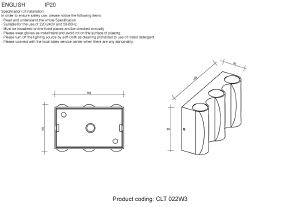 Допускается отличие страны-изготовителя, указанной в характеристиках. Линии производства могут находиться в нескольких государствах. Это не влияет на качество изготовления товара: все заводы данного бренда работают по общим стандартам, а готовые изделия проходят соответствующий контроль.Испания Коллекция Clt 022 ЦветЦвет арматуры Белый Цвет Белый Материал арматуры Металл РазмерыВысота (мм) 90 Длина (мм) 148 Высота минимальная (мм) 90 Ширина (мм) 45 ЭлектрикаКоличество ламп (шт) 1 Цоколь LED Мощность лампы (Вт) 4 Световой поток 420 Цветовая температура 4000 Дополнительная информацияСтепень защиты (IP) 65 Техническая оссобеность Полностью светодиодная -