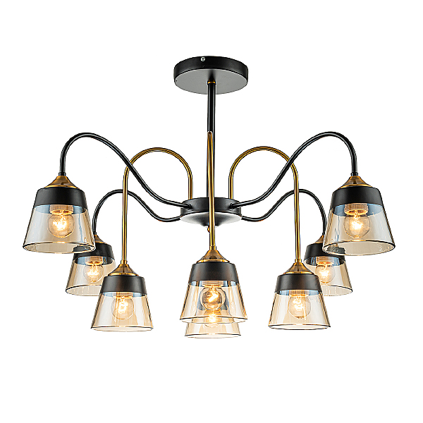 Светильник на штанге 8x40Вт, E27, металл/стекло, черный/бронза