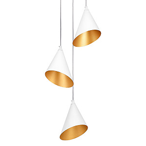 Допускается отличие страны-изготовителя, указанной в характеристиках. Линии производства могут находиться в нескольких государствах. Это не влияет на качество изготовления товара: все заводы данного бренда работают по общим стандартам, а готовые изделия проходят соответствующий контроль.Италия Коллекция Cone Gw ЦветЦвет арматуры Белый Цвет Белый Материал арматуры Металл Цвет плафона Белый, золото Материал плафона Металл РазмерыВысота (мм) 1200 Диаметр (мм) 300 Высота минимальная (мм) 300 Диаметр основания 250 ЭлектрикаКоличество ламп (шт) 3 Цоколь G9 Тип лампы Светодиодная Мощность лампы (Вт) 6 Общая мощность (Вт) 18 Напряжение (В) 220 Дополнительная информацияСпособ крепления на планку Степень защиты (IP) IP20 Тип подвеса На тросах Количество подвесов Много подвесных элементов -