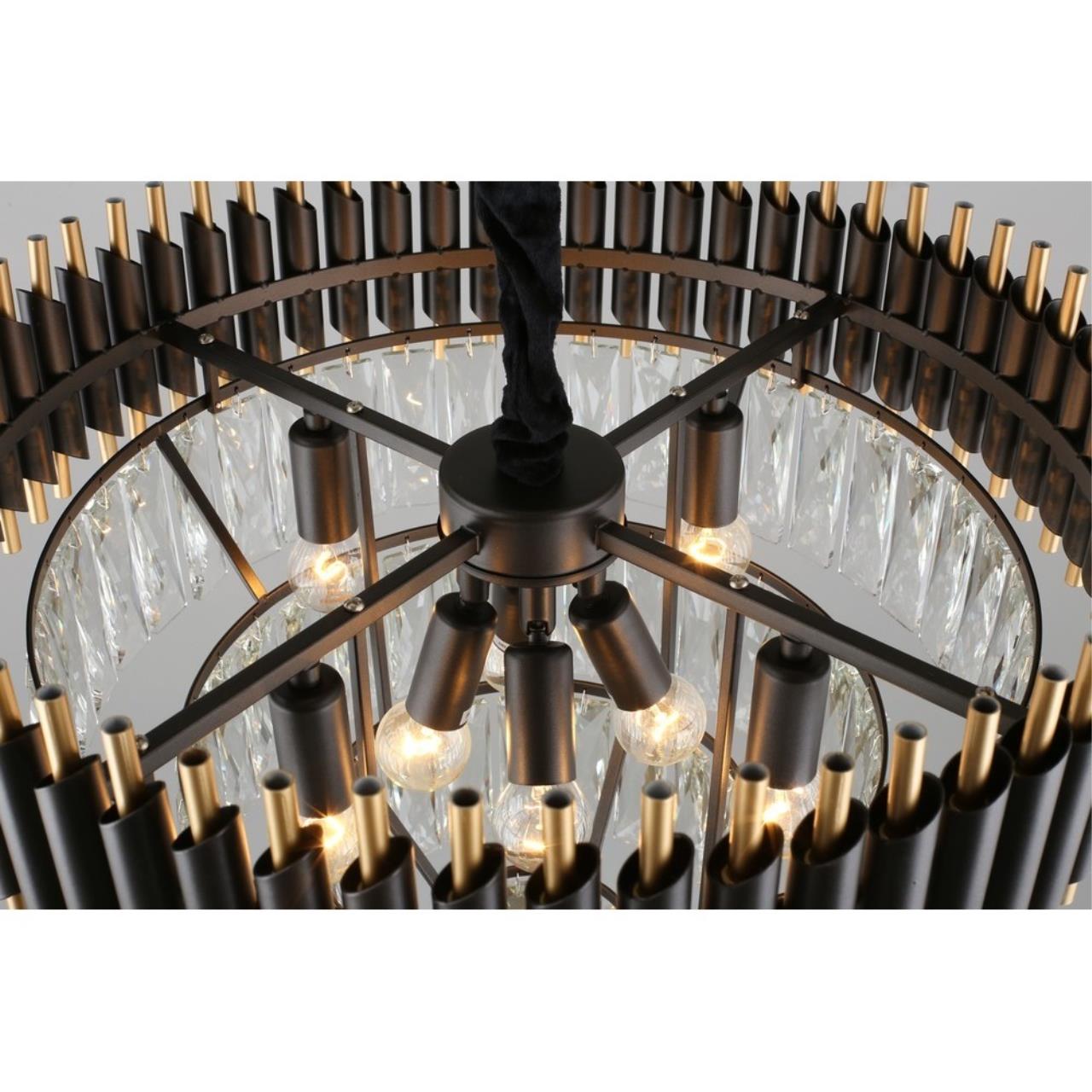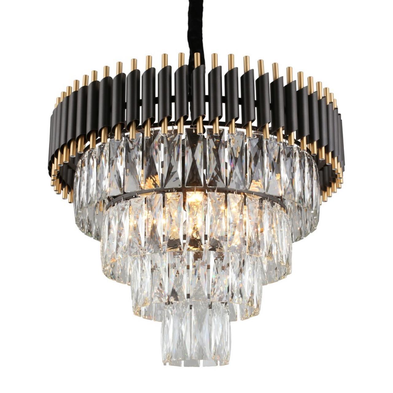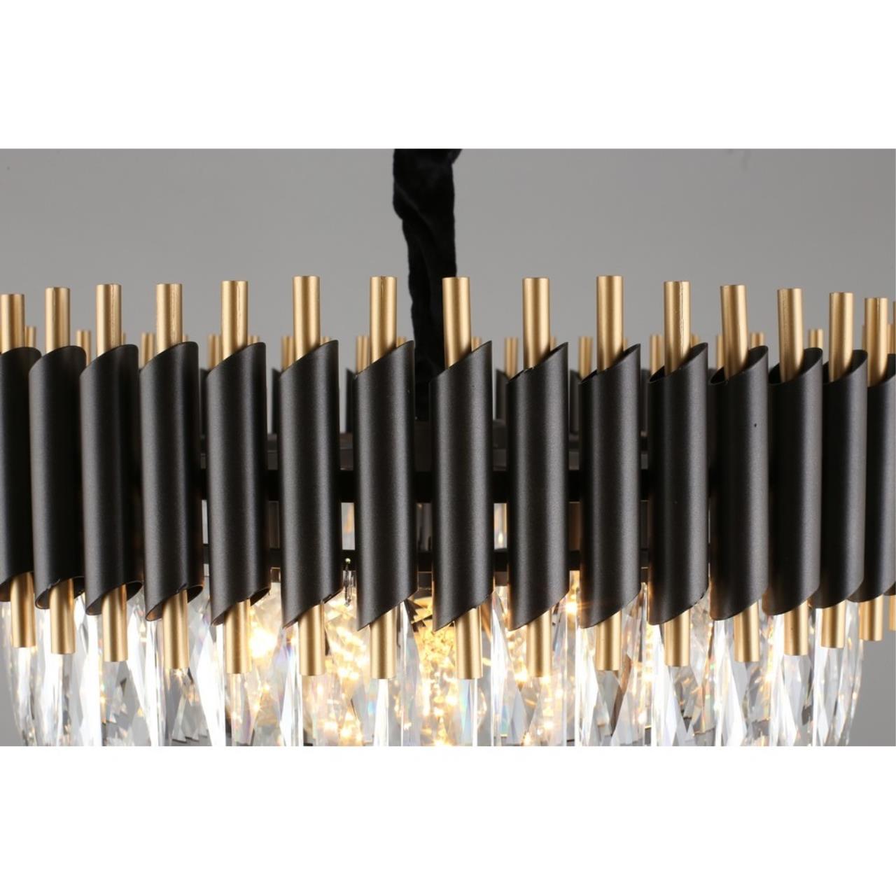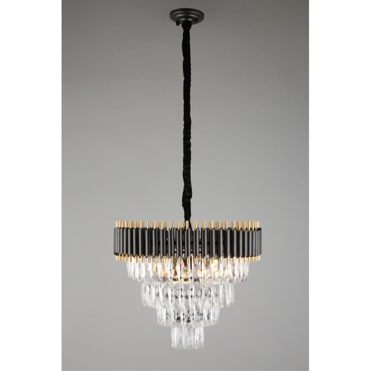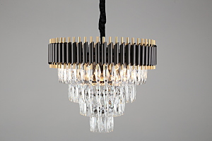 Допускается отличие страны-изготовителя, указанной в характеристиках. Линии производства могут находиться в нескольких государствах. Это не влияет на качество изготовления товара: все заводы данного бренда работают по общим стандартам, а готовые изделия проходят соответствующий контроль.Китай Коллекция Corleone ЦветЦвет арматуры Золото, Черный Цвет Черный Материал арматуры Металл Цвет декора прозрачный Материал декора Хрусталь РазмерыВысота (мм) 1250 Диаметр (мм) 540 Высота минимальная (мм) 600 Ширина (мм) 540 ЭлектрикаКоличество ламп (шт) 8 Цоколь E14 Лампочки в комплекте Нет в комплекте Мощность лампы (Вт) 40 Общая мощность (Вт) 320 Световой поток 3360 Дополнительная информацияСпособ крепления Планка Степень защиты (IP) IP20 Вес (Кг) 12 Тип подвеса На цепи -
