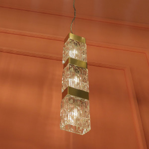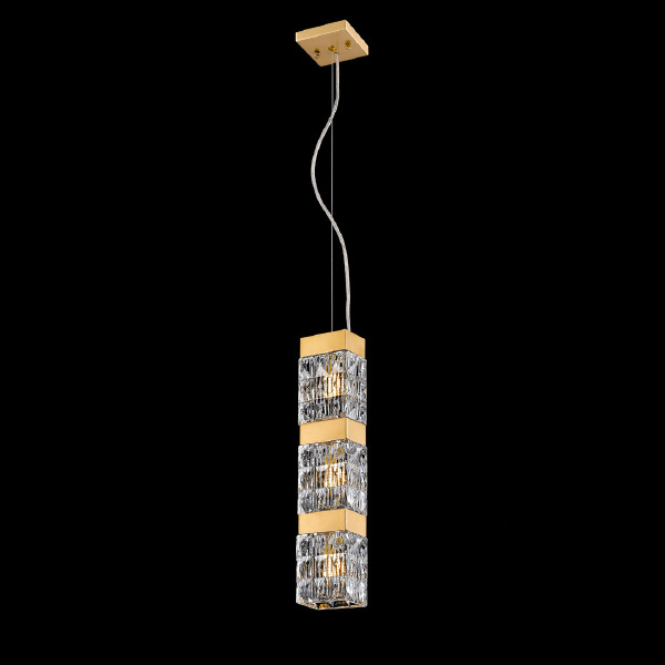 Подвесной светильник Cloyd CORUND (Клойд Корунд) P3 / арт.10683, ширина: 8 см. длина: 11 см. высота: 45 см, источник света: G9 (LED ≈ 5 Вт) х 3 шт, цвет металла - латунь.