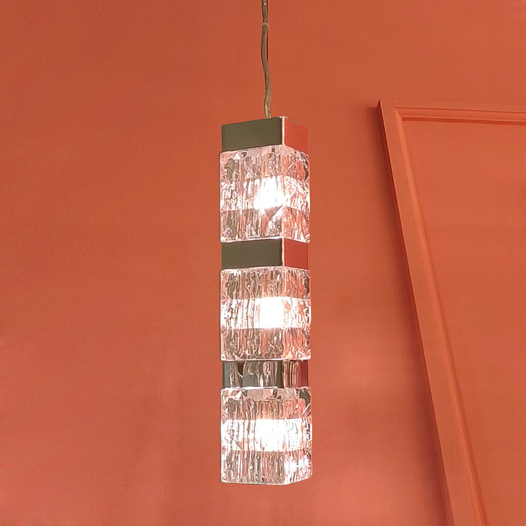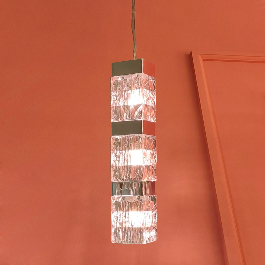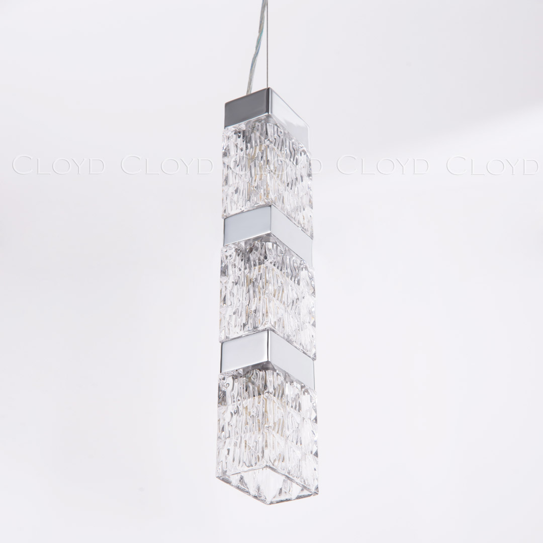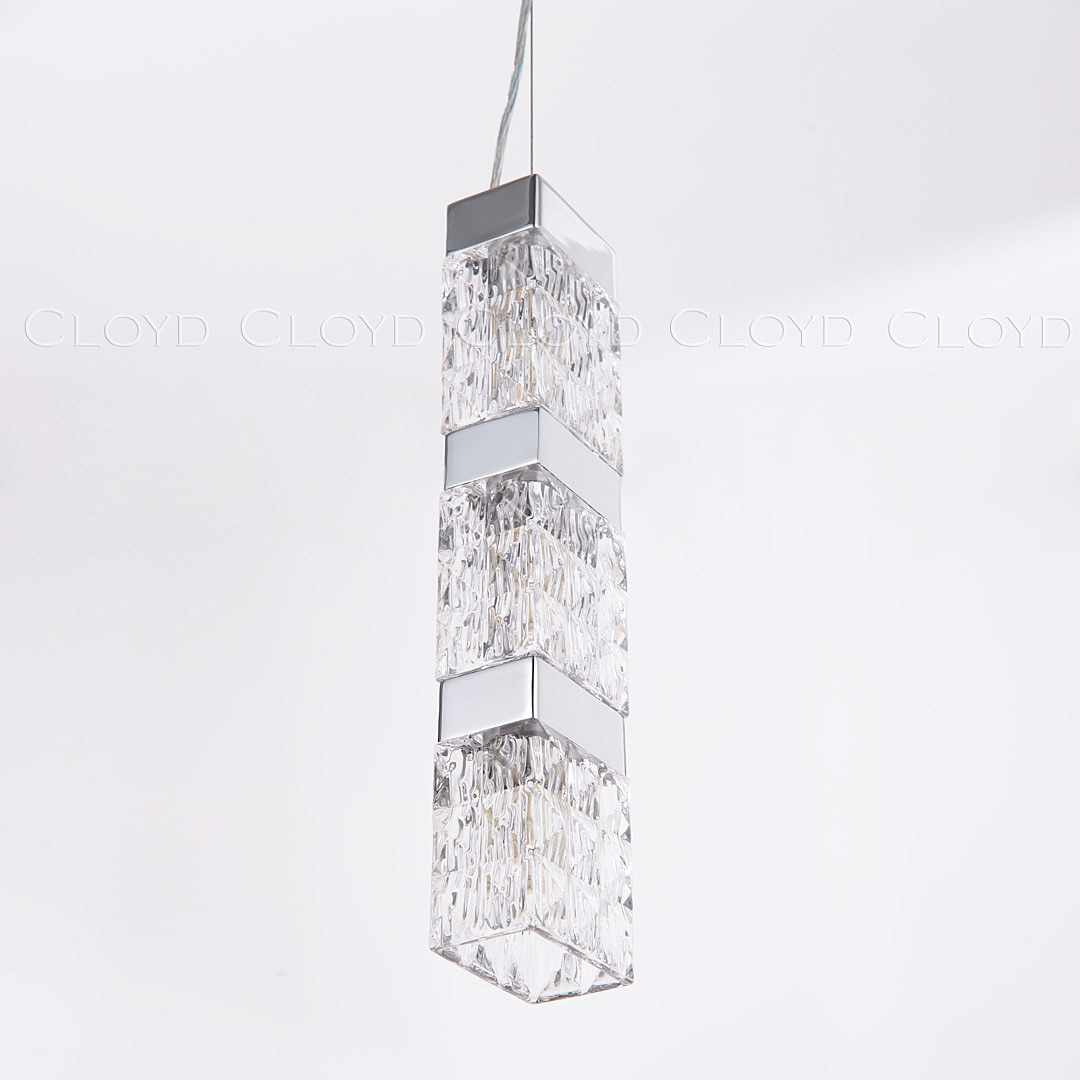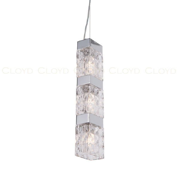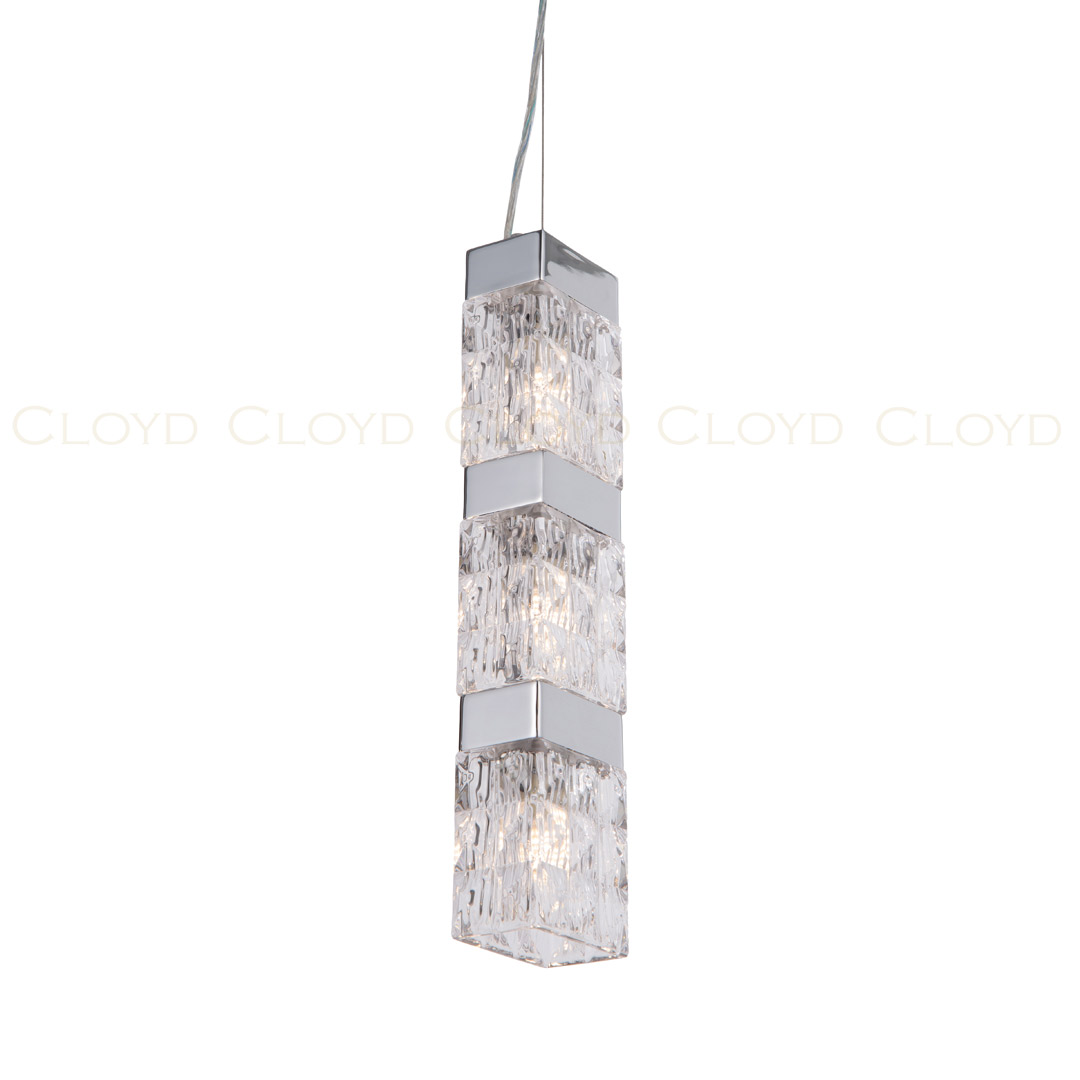 Подвесной светильник Cloyd CORUND (Клойд Корунд) P3 / арт.10713, ширина: 8 см. длина: 11 см. высота: 45 см, источник света: G9 (LED ≈ 5 Вт) х 3 шт, цвет металла - хром блестящий.