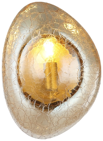 Светильник настенный из коллекции Cosmik выполнен из металла, гальванизированного в цвет бронзы, и декорирован плафоном модной неровной сглаженной формы из кракелированного стекла цвета шампань. Благодаря необычному виду стекла Светильник настенный коллекции выглядит стильно и респектабельно.