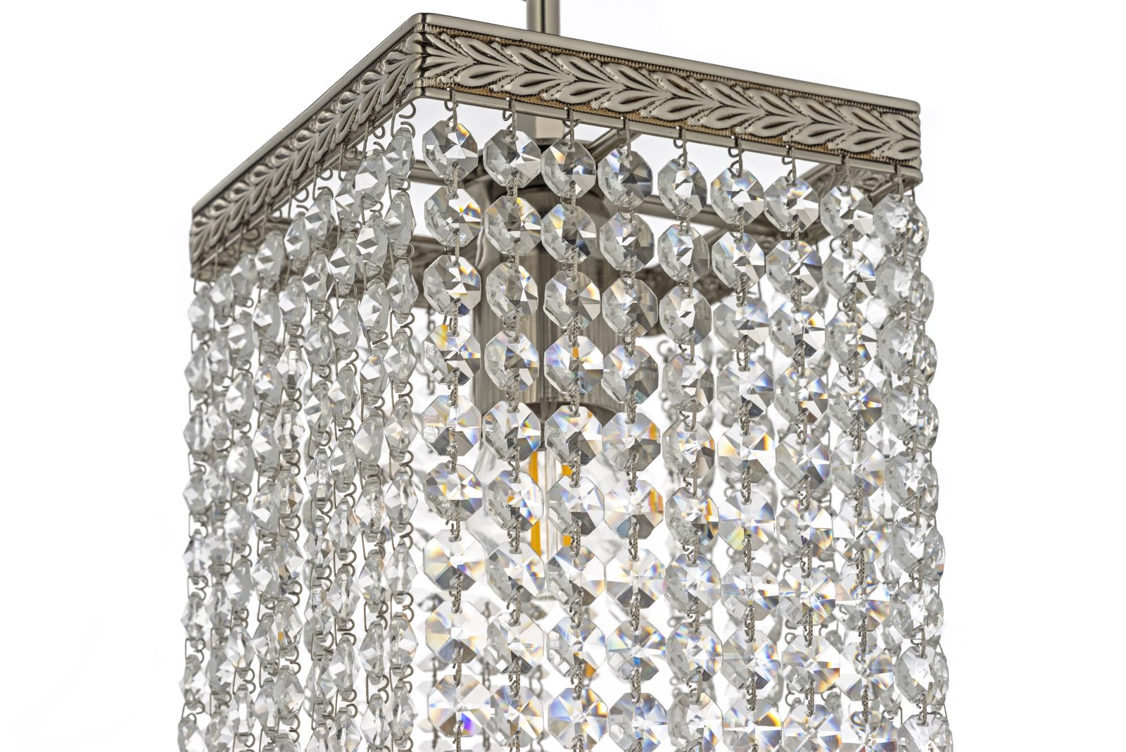 Допускается отличие страны-изготовителя, указанной в характеристиках. Линии производства могут находиться в нескольких государствах. Это не влияет на качество изготовления товара: все заводы данного бренда работают по общим стандартам, а готовые изделия проходят соответствующий контроль.Италия Коллекция Cremono Nickel ЦветЦвет арматуры матовый никель Цвет Никель Материал арматуры Металл Цвет плафона прозрачный Материал плафона Хрусталь РазмерыВысота (мм) 380 Диаметр (мм) 140 Ширина (мм) 140 ЭлектрикаКоличество ламп (шт) 1 Цоколь E27 Тип лампы Накаливания Мощность лампы (Вт) 60 Общая мощность (Вт) 60 Напряжение (В) 220 Площадь освещения 3.3 Дополнительная информацияСтепень защиты (IP) IP20 Место установки на потолок -