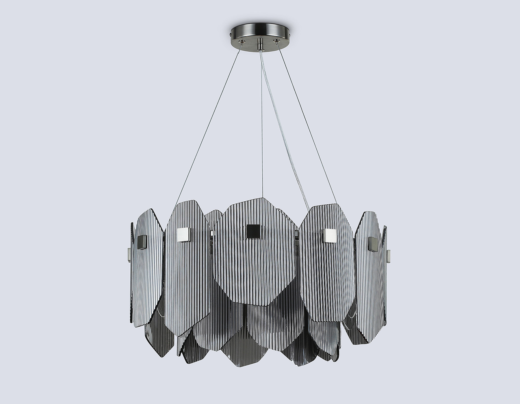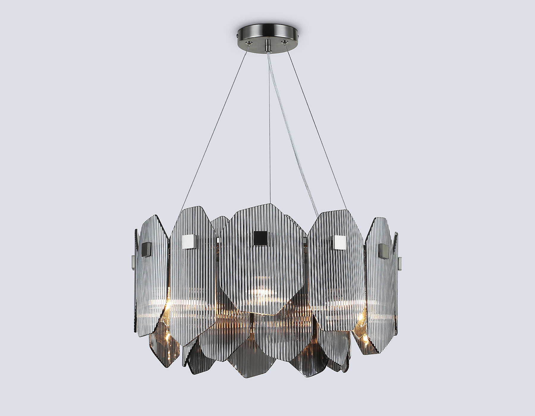 Подвесная люстра из коллекции HIGH LIGHT. Модель LH31201 представлена в стиле неоклассика. Люстра выполнена из металлического каркаса цвета сатин никель со стеклянным дизайнерским плафоном дымчатого цвета. Имеет шесть цоколей Е14. Люстра будет прекрасным дополнением в любом помещении.