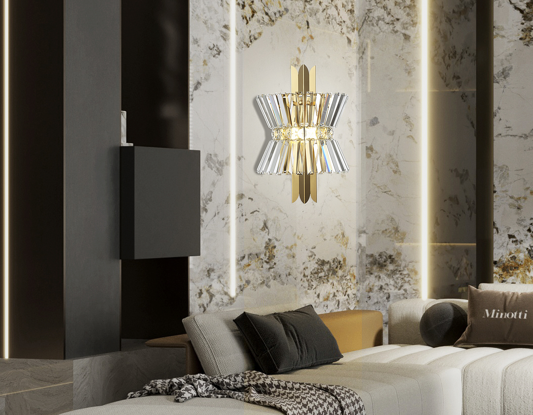Настенный светильник из коллекции HIGH LIGHT. Модель LH41029 представлена в современном стиле Ар-деко. Светильник выполнен в цвете латунь и декорирован превосходным прозрачным хрусталем, каркас изготовлен из металла. Для данной модели подойдут лампы с цоколем Е14. Светильник будет прекрасным дополнением в гостиной или спальне.
