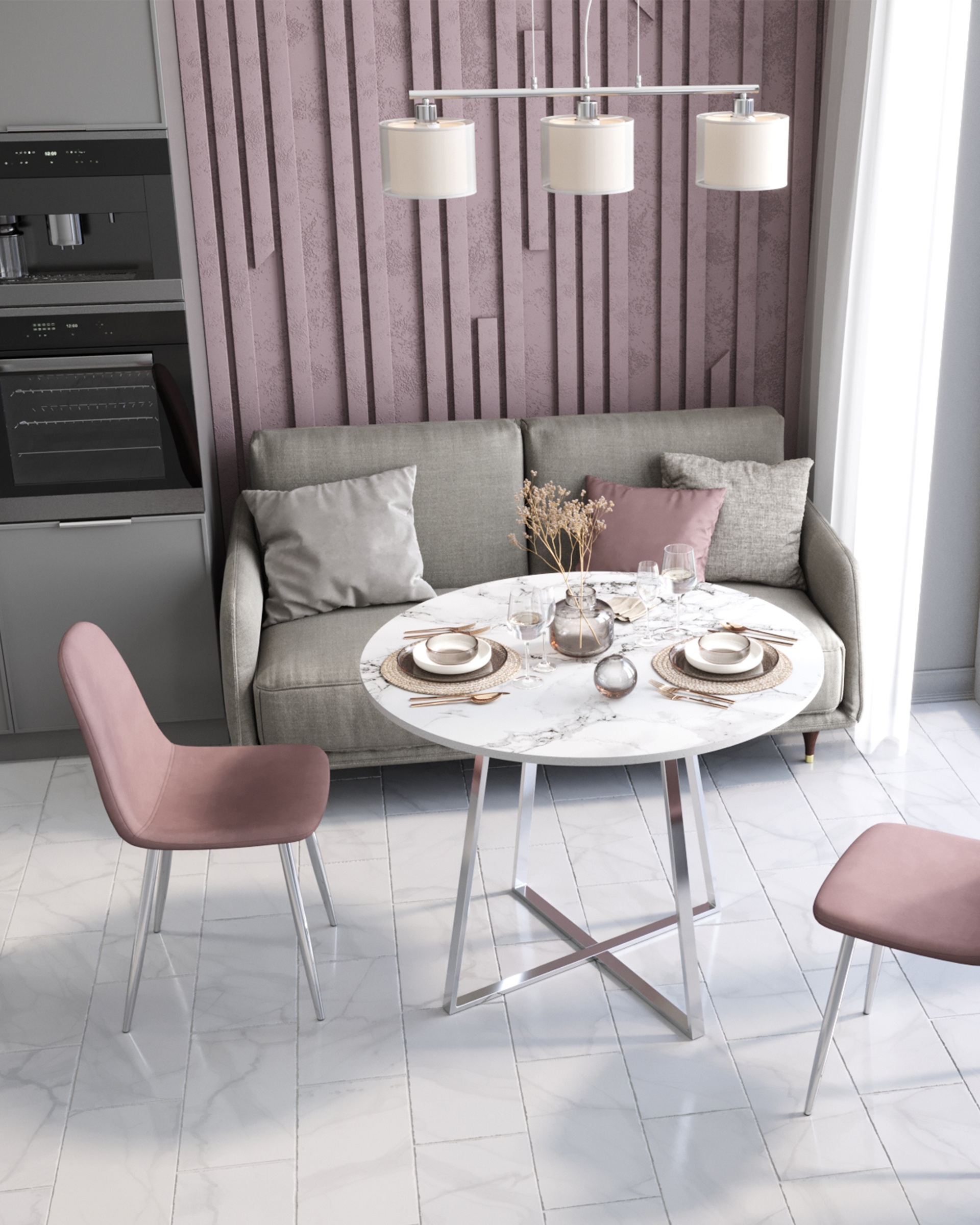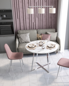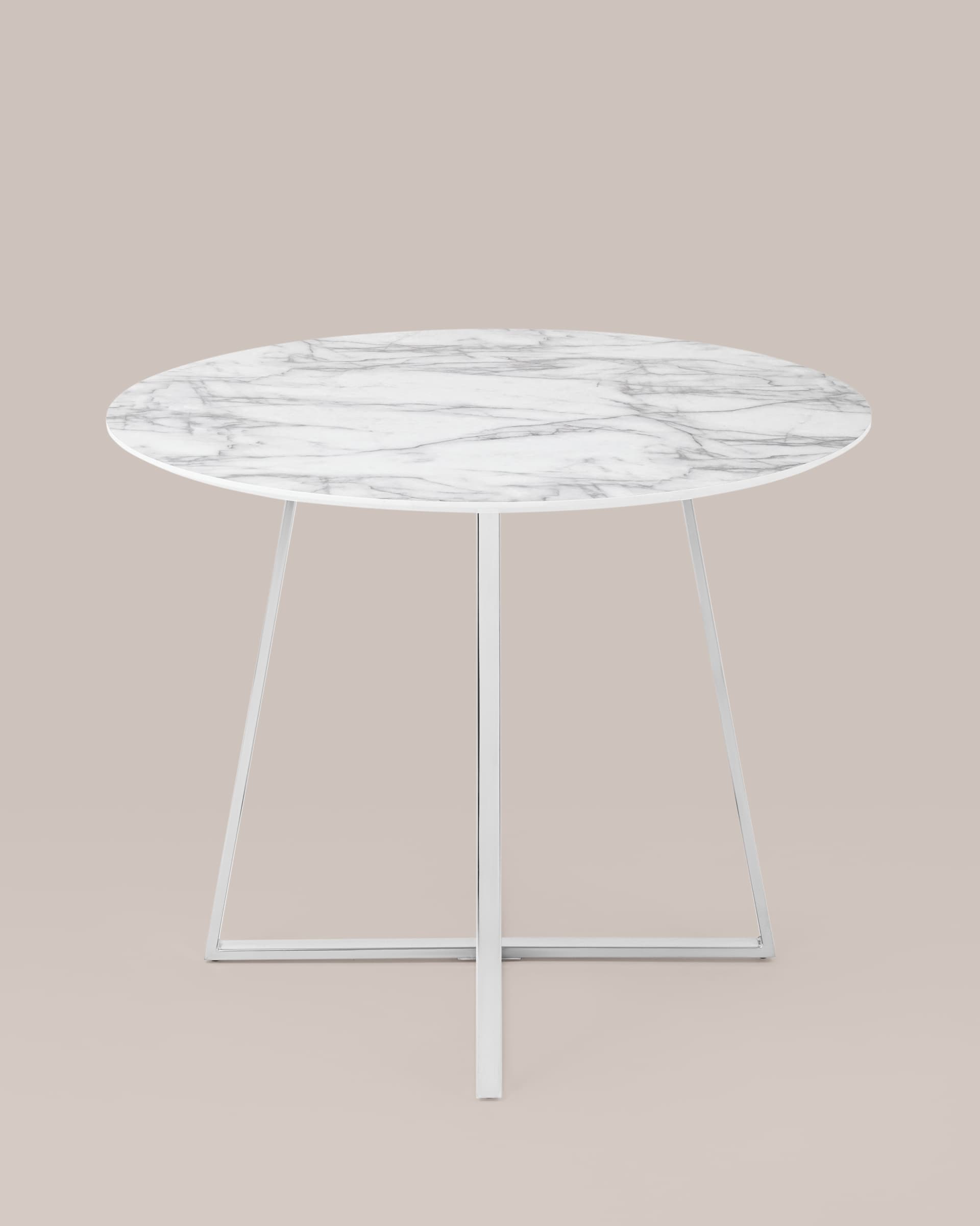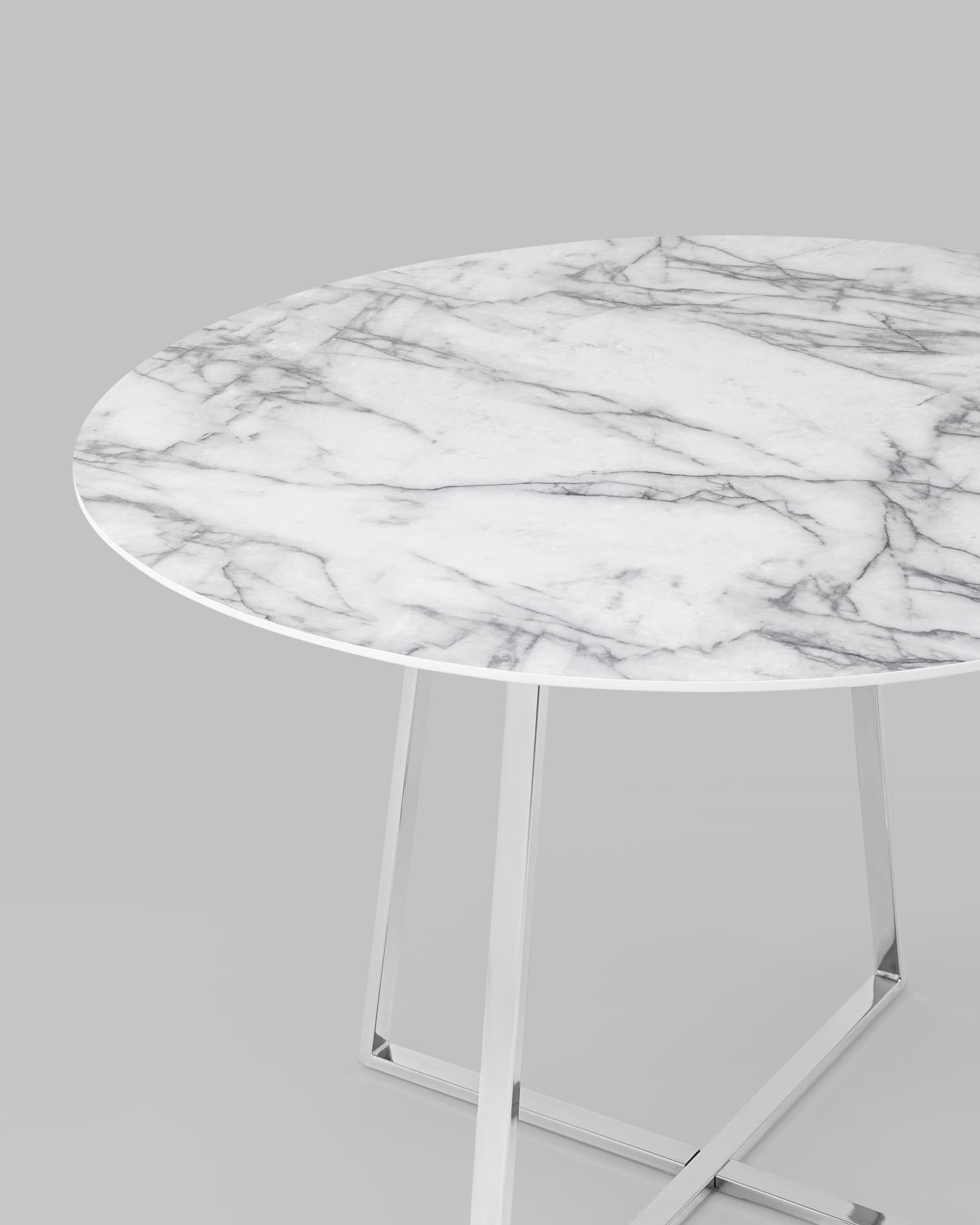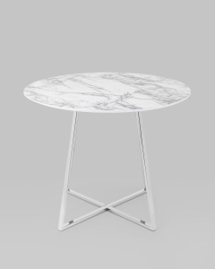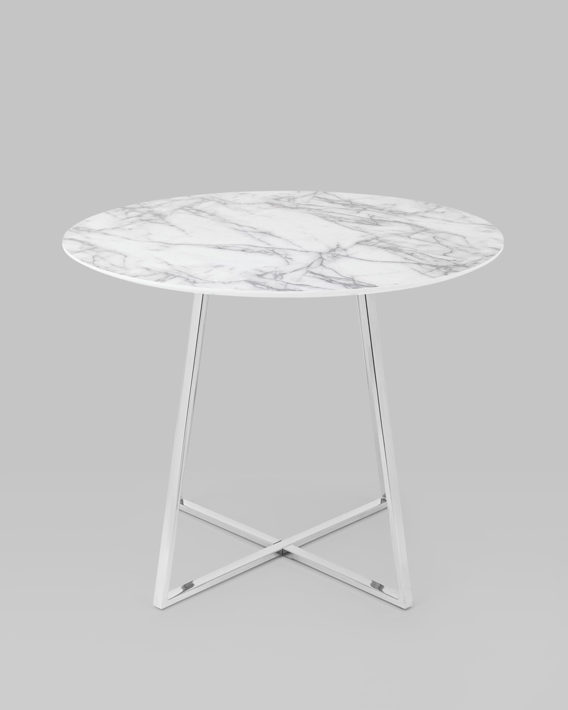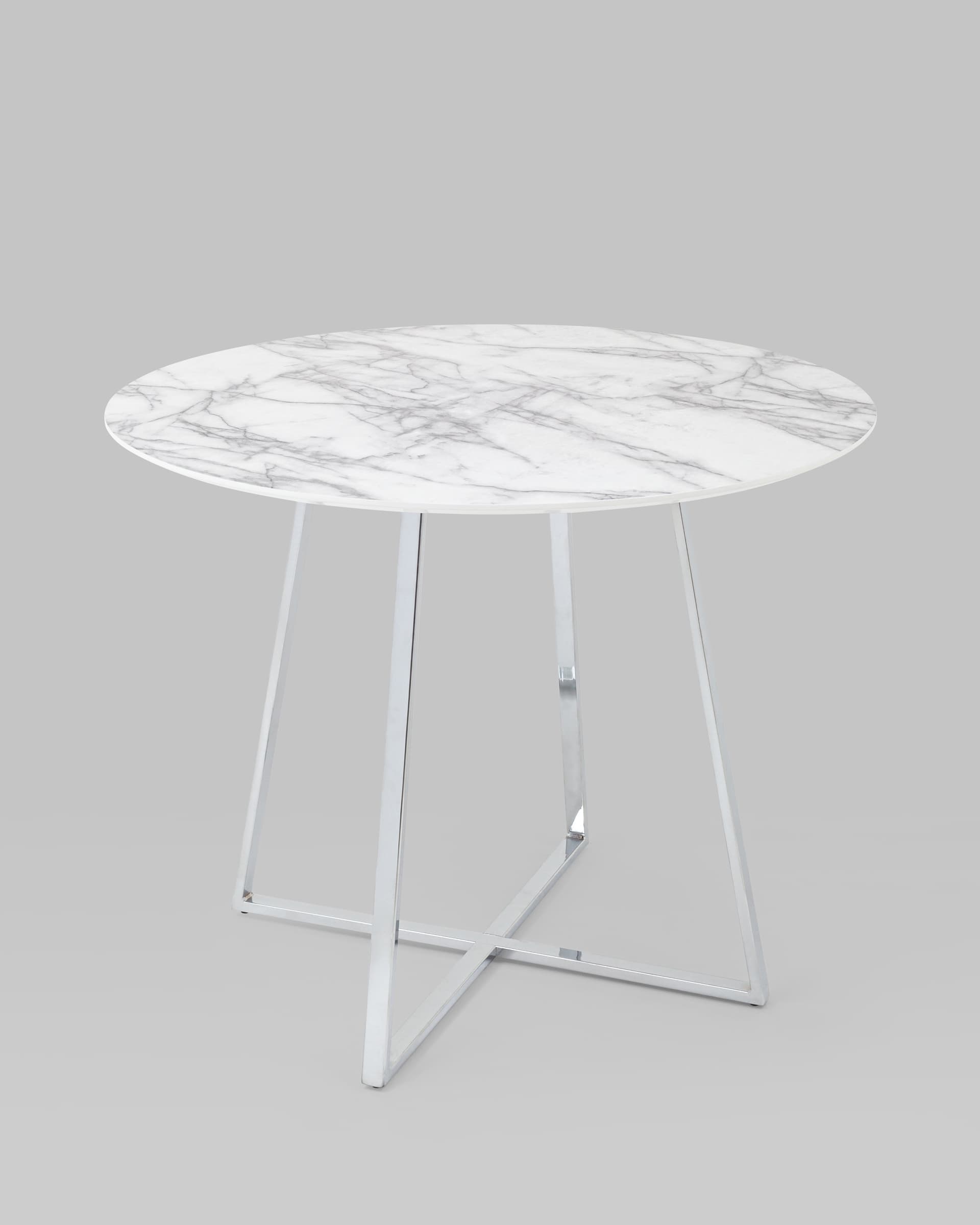 Стол обеденный Дакота 100*100 столешница белый мрамор ножки хром