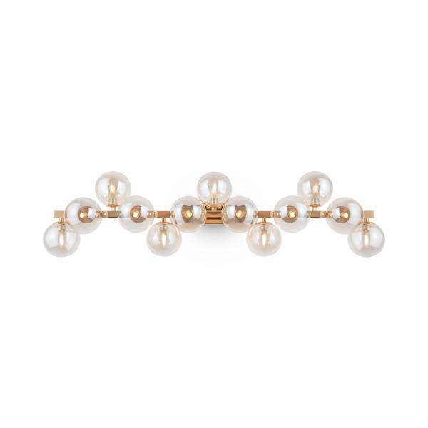 Допускается отличие страны-изготовителя, указанной в характеристиках. Линии производства могут находиться в нескольких государствах. Это не влияет на качество изготовления товара: все заводы данного бренда работают по общим стандартам, а готовые изделия проходят соответствующий контроль.Германия Коллекция Dallas ЦветЦвет арматуры Золото Цвет Золото Материал арматуры Металл Цвет плафона янтарный Материал плафона Стекло Форма плафона Шар РазмерыВысота (мм) 220 Длина (мм) 220 Высота минимальная (мм) 220 Ширина (мм) 950 ЭлектрикаКоличество ламп (шт) 13 Цоколь G9 Лампочки в комплекте Нет в комплекте Мощность лампы (Вт) 28 Напряжение (В) 220 Дополнительная информацияСтепень защиты (IP) IP20 Вес (Кг) 3,01 -
