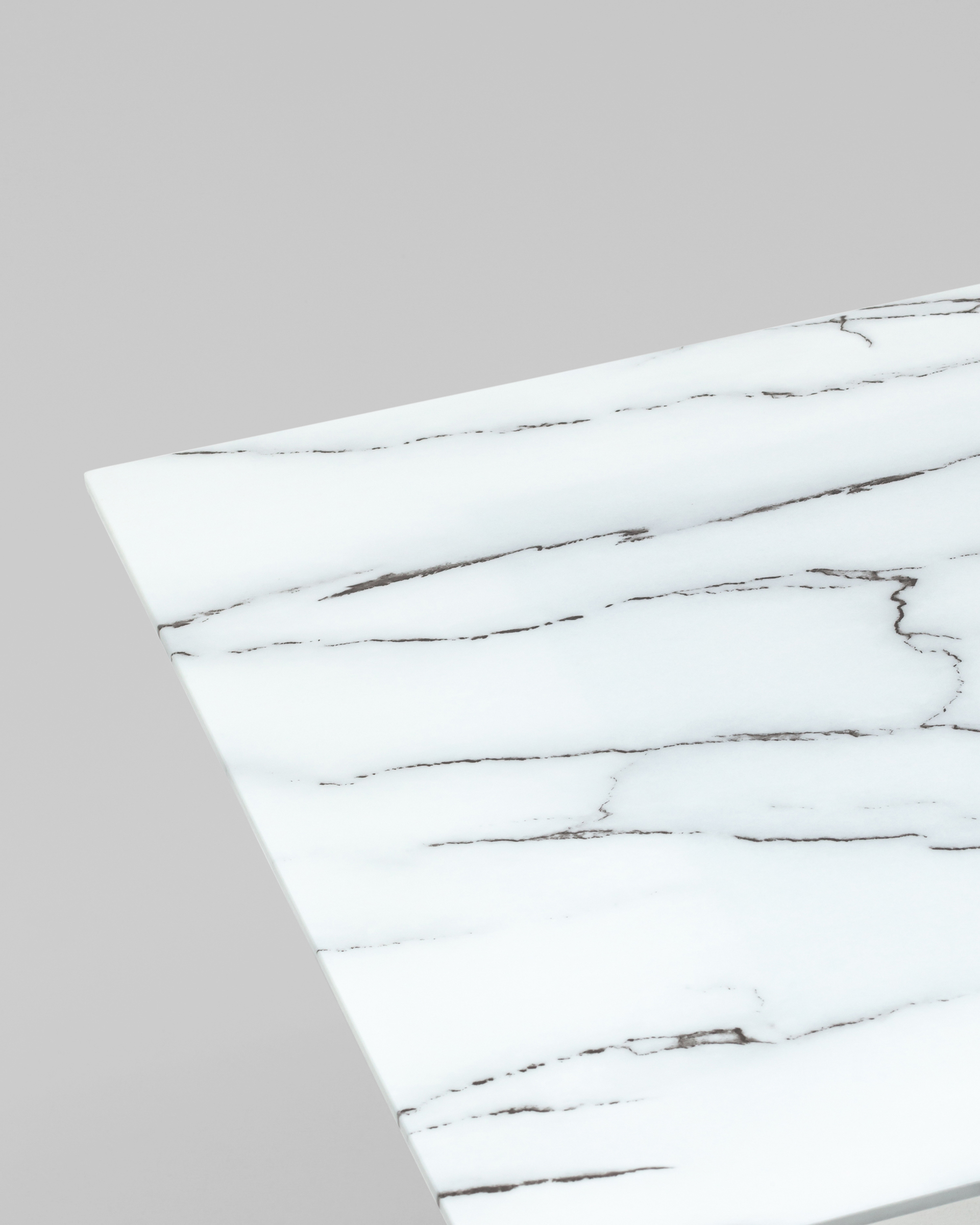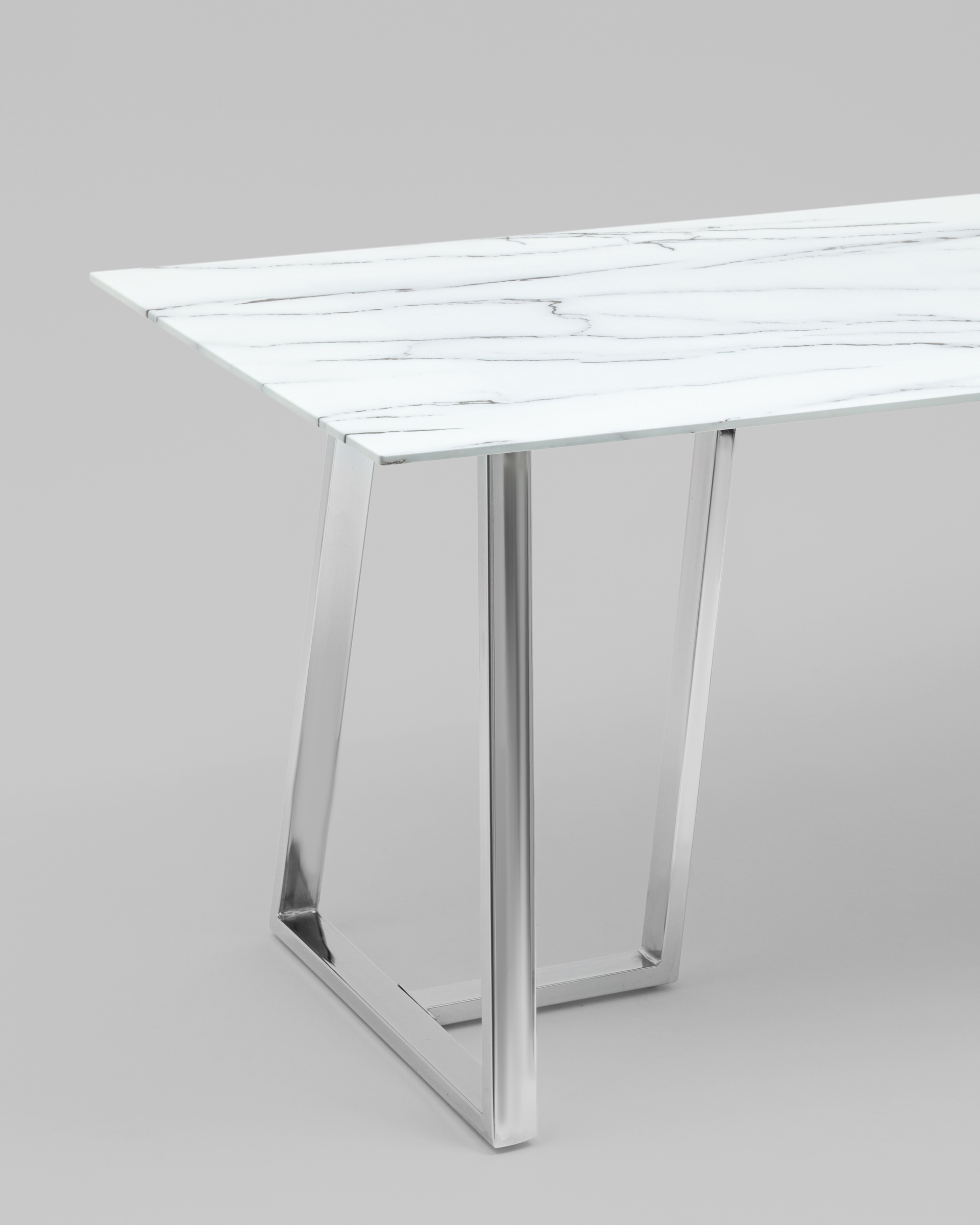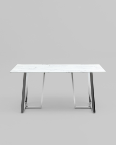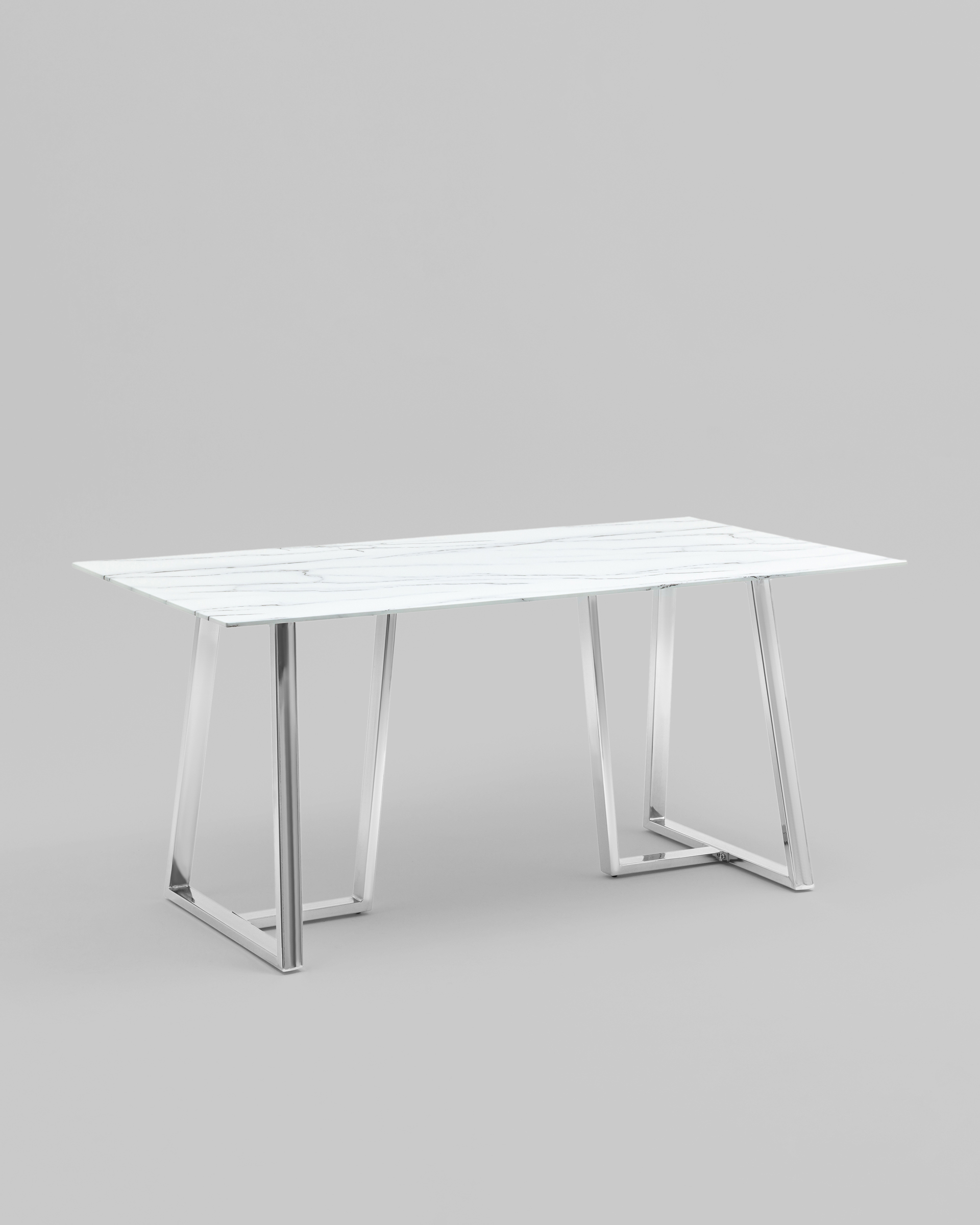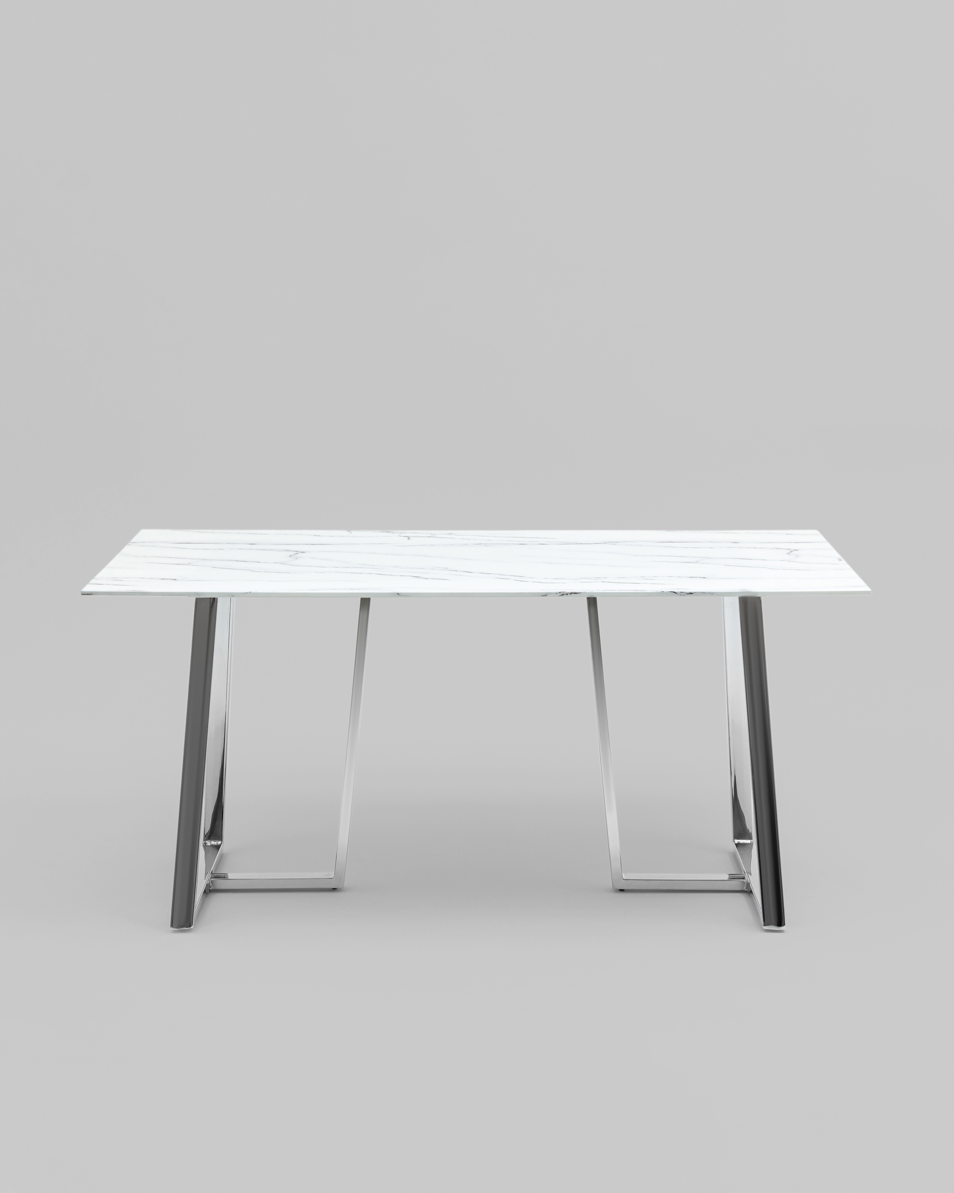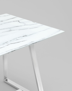 Стол обеденный Даллас 160*90 белый, стеклянная столешница с рисунком под мрамор