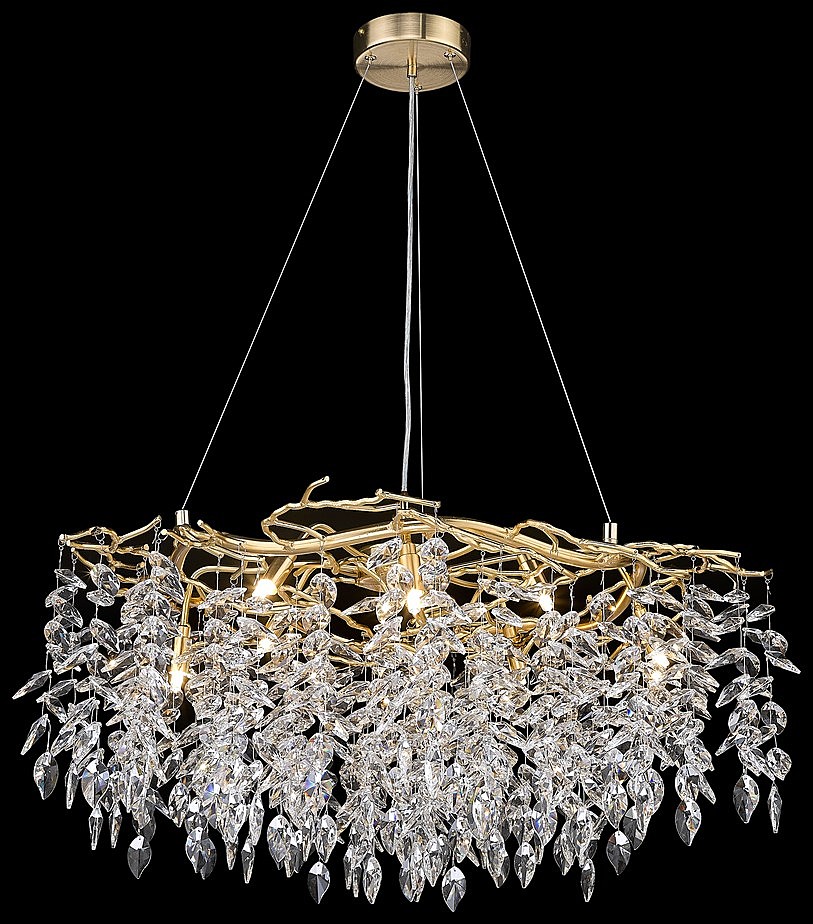 Допускается отличие страны-изготовителя, указанной в характеристиках. Линии производства могут находиться в нескольких государствах. Это не влияет на качество изготовления товара: все заводы данного бренда работают по общим стандартам, а готовые изделия проходят соответствующий контроль.Италия Коллекция Damiana ЦветЦвет арматуры матовое золото Цвет Золото Материал арматуры Металл Цвет плафона прозрачный Материал плафона Хрусталь РазмерыВысота (мм) 380 Длина (мм) 800 Диаметр (мм) 800 Высота минимальная (мм) 380 Ширина (мм) 800 ЭлектрикаКоличество ламп (шт) 10 Цоколь G9 Лампочки в комплекте Нет в комплекте Мощность лампы (Вт) 40 Напряжение (В) 220 Площадь освещения 20 Дополнительная информацияСпособ крепления Планка Степень защиты (IP) IP20 Тип подвеса На тросах -