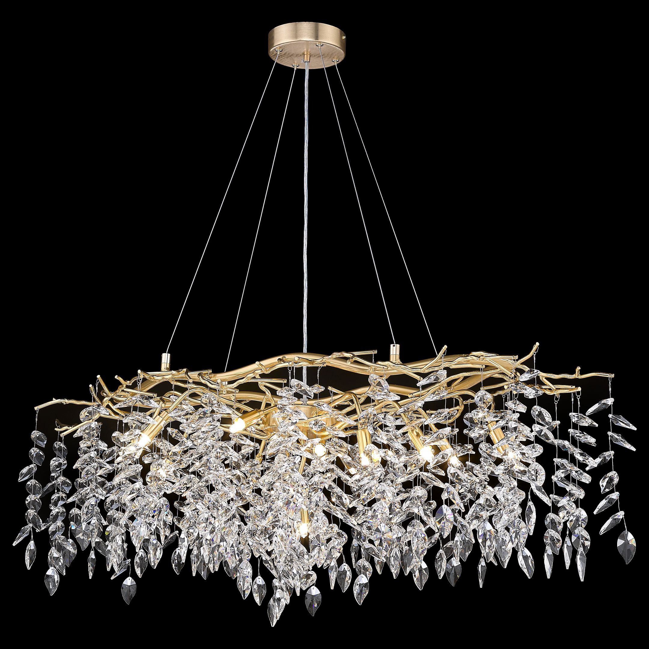 Допускается отличие страны-изготовителя, указанной в характеристиках. Линии производства могут находиться в нескольких государствах. Это не влияет на качество изготовления товара: все заводы данного бренда работают по общим стандартам, а готовые изделия проходят соответствующий контроль.Италия Коллекция Damiana ЦветЦвет арматуры матовое золото Цвет Золото Материал арматуры Металл Цвет плафона прозрачный Материал плафона Хрусталь РазмерыВысота (мм) 400 Длина (мм) 1000 Высота минимальная (мм) 400 Ширина (мм) 500 ЭлектрикаКоличество ламп (шт) 12 Цоколь G9 Лампочки в комплекте Нет в комплекте Мощность лампы (Вт) 40 Напряжение (В) 220 Площадь освещения 24 Дополнительная информацияСпособ крепления Планка Степень защиты (IP) IP20 Тип подвеса На тросах -