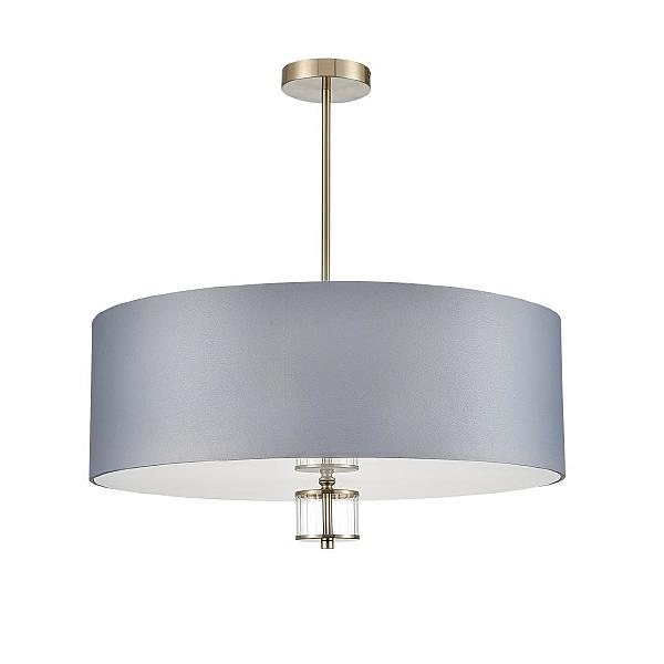 Светильники линии Damona красивы, элегантны и притягательны. Арматура выполнена из металла трендового цвета латунь титаниум. Текстильные плафоны представлены в двух цветах и меняют свой оттенок в зависимости от освещения: от серого при выключенном свете до серо-синего при включенном и от кремово-бежевого до золотистого. Снизу абажуров установлен акриловый рассеиватель, который мягко рассеивает свет. Декоративный элемент из стеклянного фактурного стекла в нижней части абажура делает дизайн завершенным.