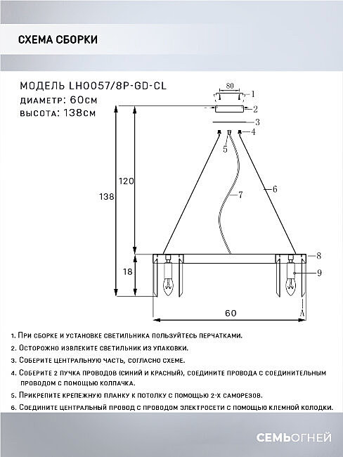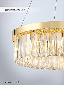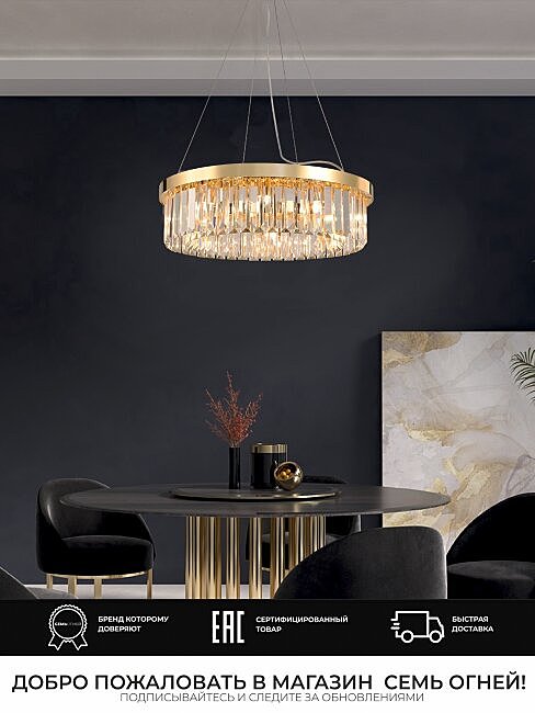 ПРЕИМУЩЕСТВА. Гальваническое покрытие цвета Золото. Хрусталь непревзойденного качества ASTREA. Хорошие осветительные характеристики благодаря многогранности хрусталя. ПРИМЕНЕНИЕ. Люстра подвесная предназначена для основного освещения помещений-. гостиная,зал,спальня,прихожая,детская,кухня. Можно регулировать высоту люстры изменением длины провода. Используемые материалы-металл,хрусталь. Источник света-лампы накаливания мощностью до 40Вт,светодиодные лампы мощностью до 12Вт. Крепление накладным способом монтажной планки шурупами. Удобный крепеж подойдет под все виды потолков-бетон,гипсокартон,натяжные и деревянные потолки. Люстра подвесная изготовлена из высококачественных материалов и является безопасной для человека и окружающей среды.. Семь Огней создает продукт от эскиза до готового шедевра. Над созданием светильников трудятся одни из лучших дизайнеров и конструкторов. Наша компания предъявляет высокие требования к производимой продукции, что подтверждено сертификатами качества.