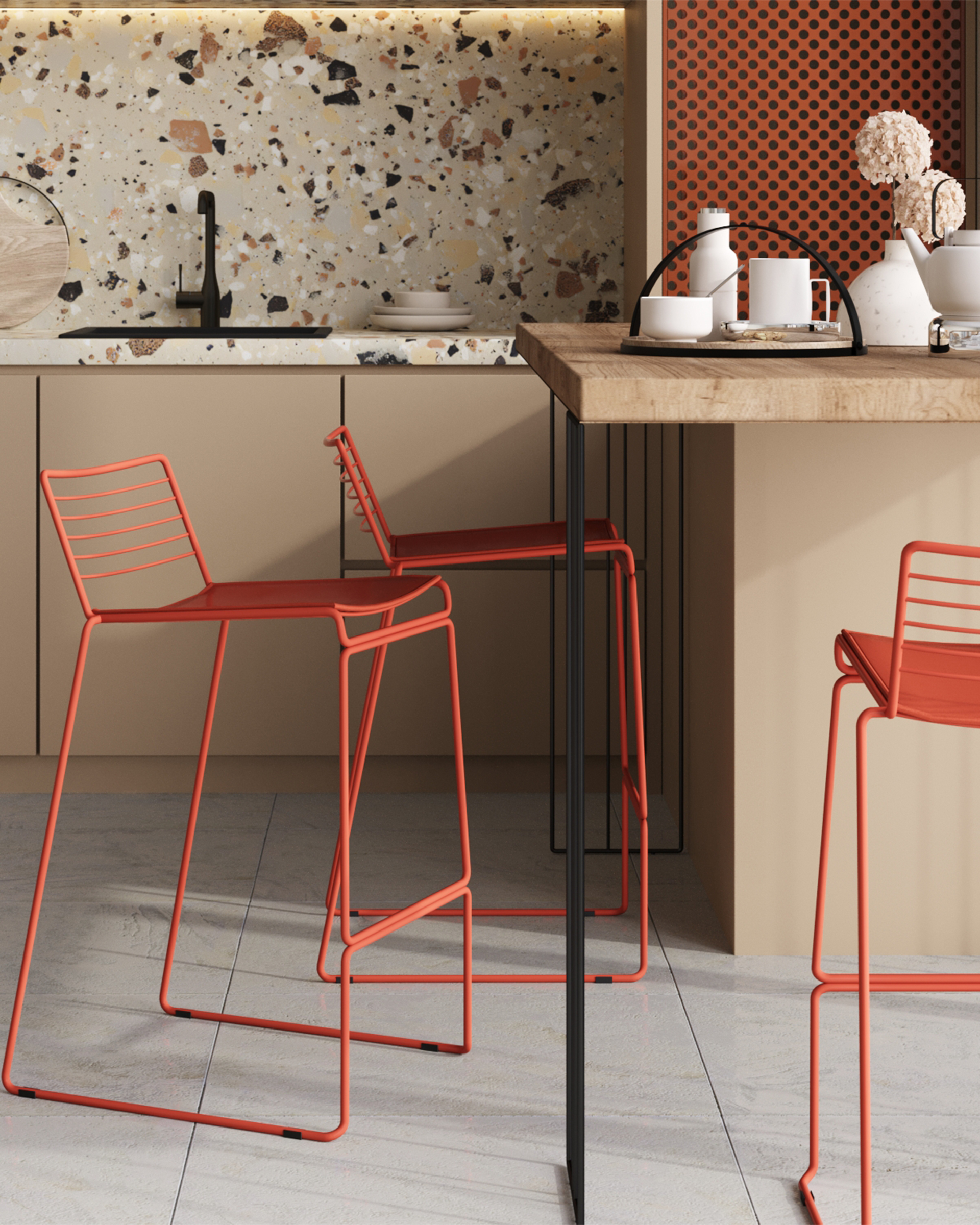 Стул полубарный Danny бордовый металл с подушкой из экокожи
