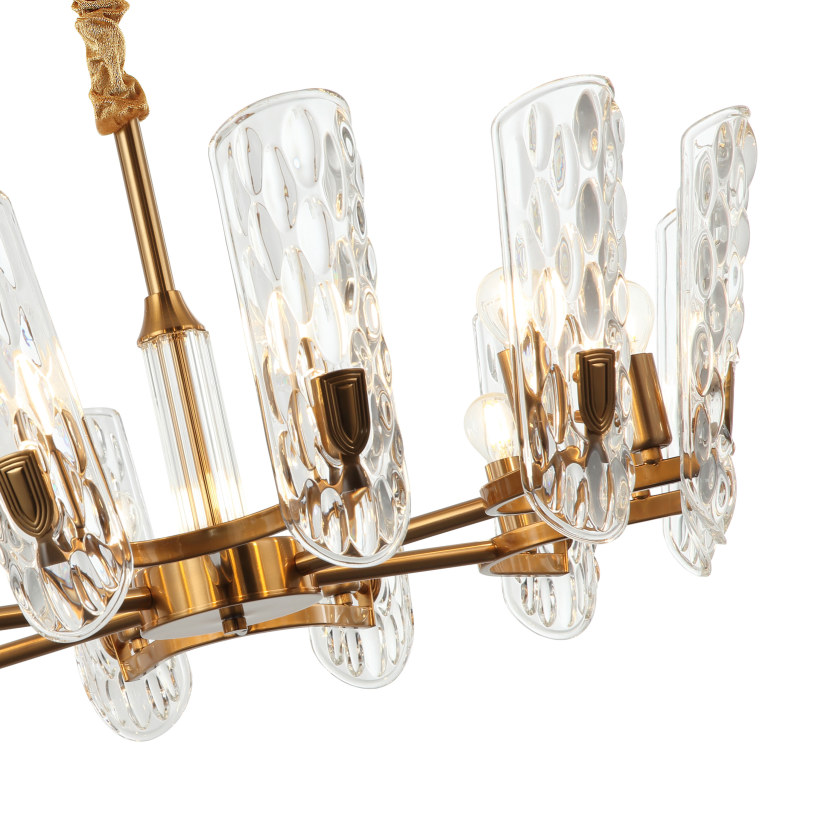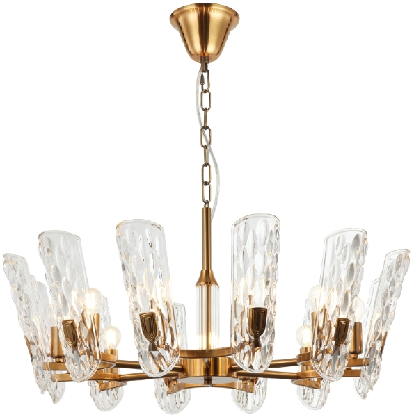 Люстра подвесная из коллекции Darling выполнена из металла, гальванизированного в цвет бронзы, и декорирована массивными прозрачными фактурными стеклами, отлитыми на сложную форму. Благодаря широкой арматуре люстра выглядит стильно и респектабельно. Премиальное качество и неповторимыи? дизаи?н светильников идеально подои?дут как в классические, так и современные интерьеры.