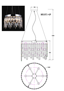 Допускается отличие страны-изготовителя, указанной в характеристиках. Линии производства могут находиться в нескольких государствах. Это не влияет на качество изготовления товара: все заводы данного бренда работают по общим стандартам, а готовые изделия проходят соответствующий контроль.Россия Коллекция David ЦветЦвет арматуры Хром Цвет Хром Материал арматуры Металл Цвет плафона прозрачный Материал плафона Хрусталь РазмерыВысота (мм) 1050 Диаметр (мм) 450 Ширина (мм) 450 ЭлектрикаКоличество ламп (шт) 6 Цоколь E14 Лампочки в комплекте Нет в комплекте Мощность лампы (Вт) 60 Общая мощность (Вт) 360 Напряжение (В) 220 Дополнительная информацияСпособ крепления Планка Тип подвеса На тросах -