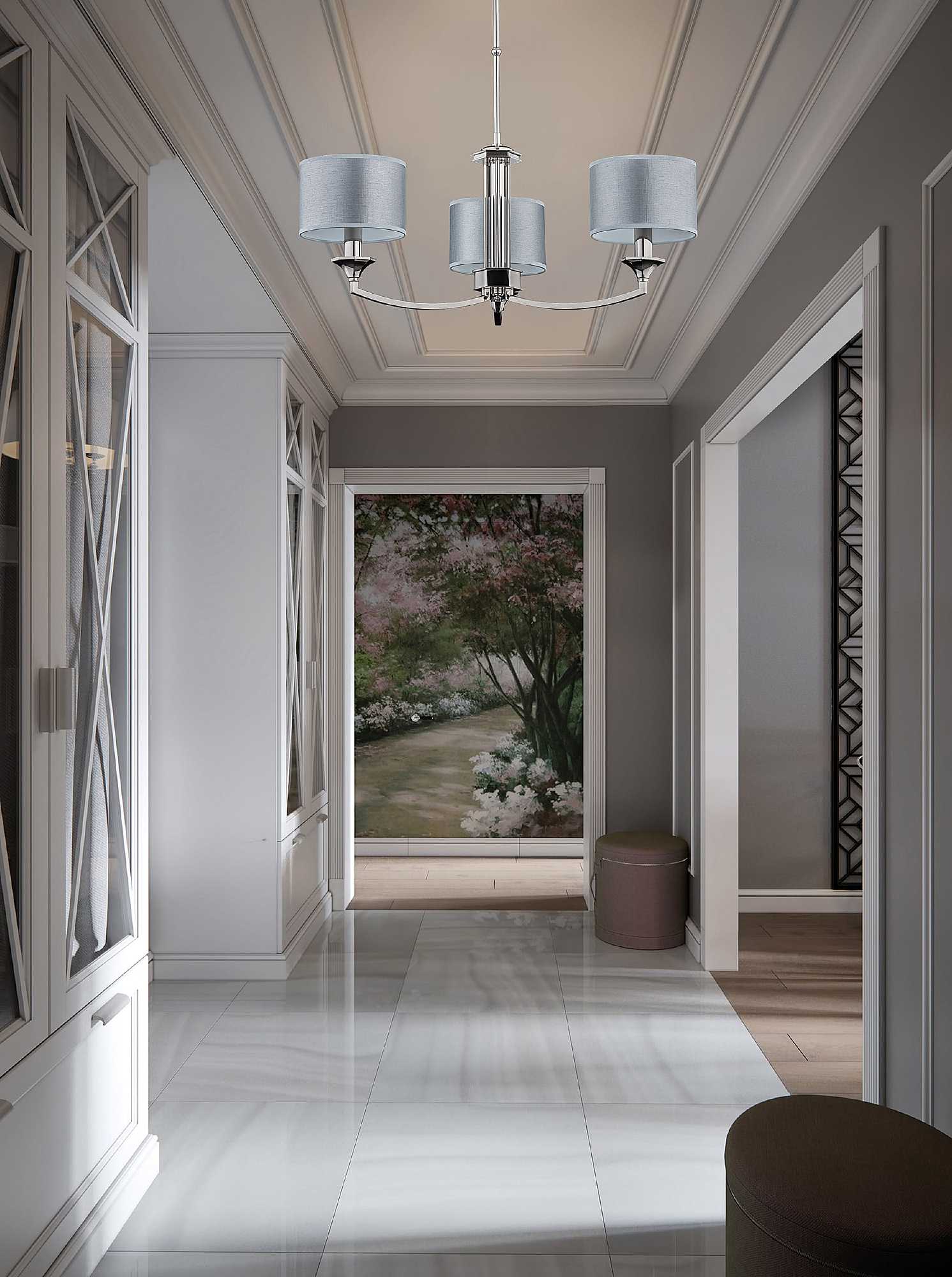 Трёхрожковая люстра DEC-ZW-3 (BN/A) с отделкой в хроме - лаконичная и стильная. Абажуры в кремовых тонах и компактный диаметр делают её отличной для спальни, небольшой столовой или кабинета в сдержанной классике.