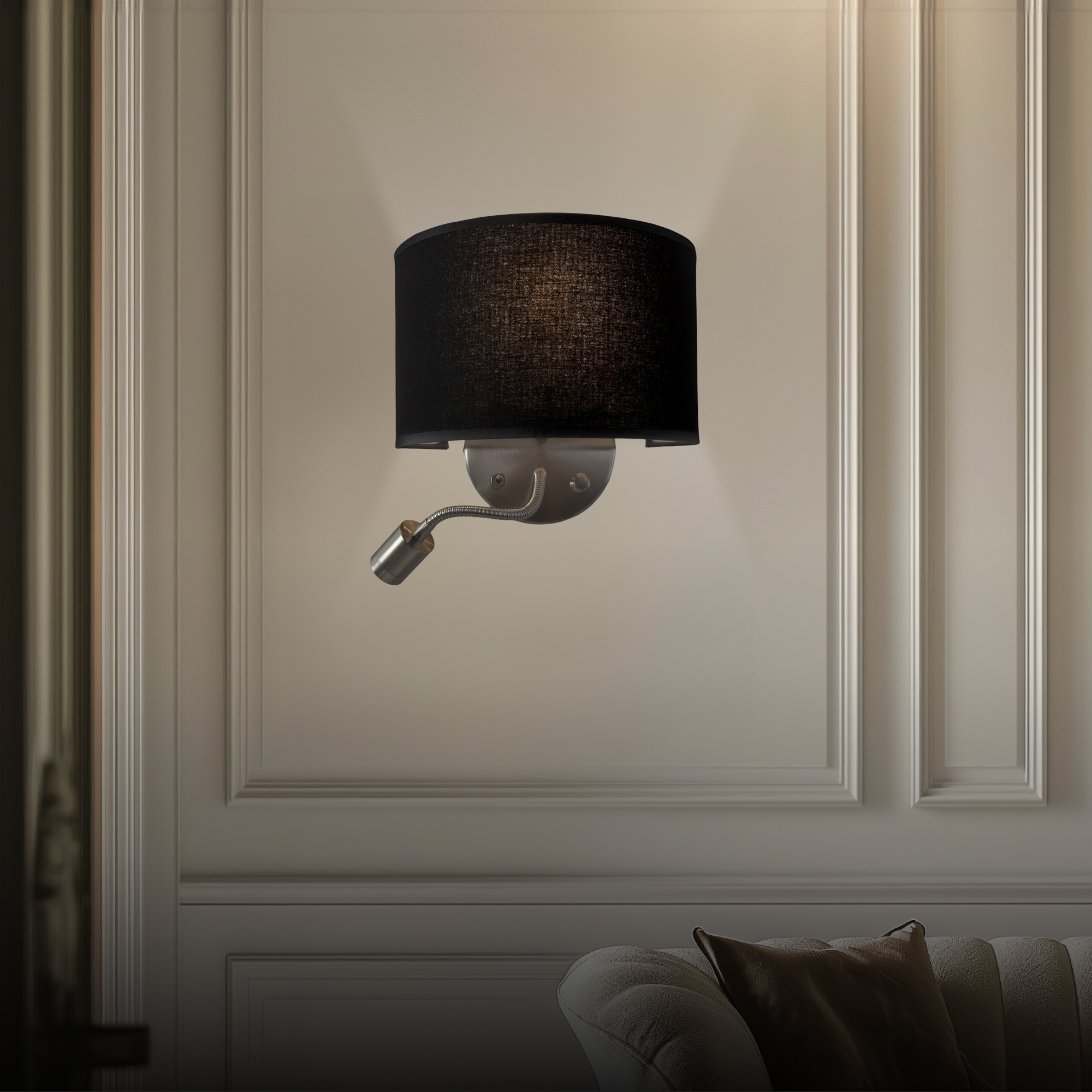 Допускается отличие страны-изготовителя, указанной в характеристиках. Линии производства могут находиться в нескольких государствах. Это не влияет на качество изготовления товара: все заводы данного бренда работают по общим стандартам, а готовые изделия проходят соответствующий контроль.Дания Коллекция Декарт ЦветЦвет арматуры Хром Цвет Черный Материал арматуры Металл Цвет плафона Черный Материал плафона Текстиль РазмерыВысота (мм) 220 Ширина (мм) 245 Глубина (мм) 110 ЭлектрикаКоличество ламп (шт) 2 Цоколь Е14 Тип лампы Светодиодная, Накаливания, Светодиодные, Компактные люмин., Галогеновые Мощность лампы (Вт) 60+3 Напряжение (В) 220 Световой поток 225 Цветовая температура 3000 Площадь освещения 3 Дополнительная информацияСпособ крепления Планка Степень защиты (IP) IP20 Тип выключателя Выключатель на корпусе Вес (Кг) 0.860 Диммирование Да Техническая оссобеность Дополнительная подсветка -