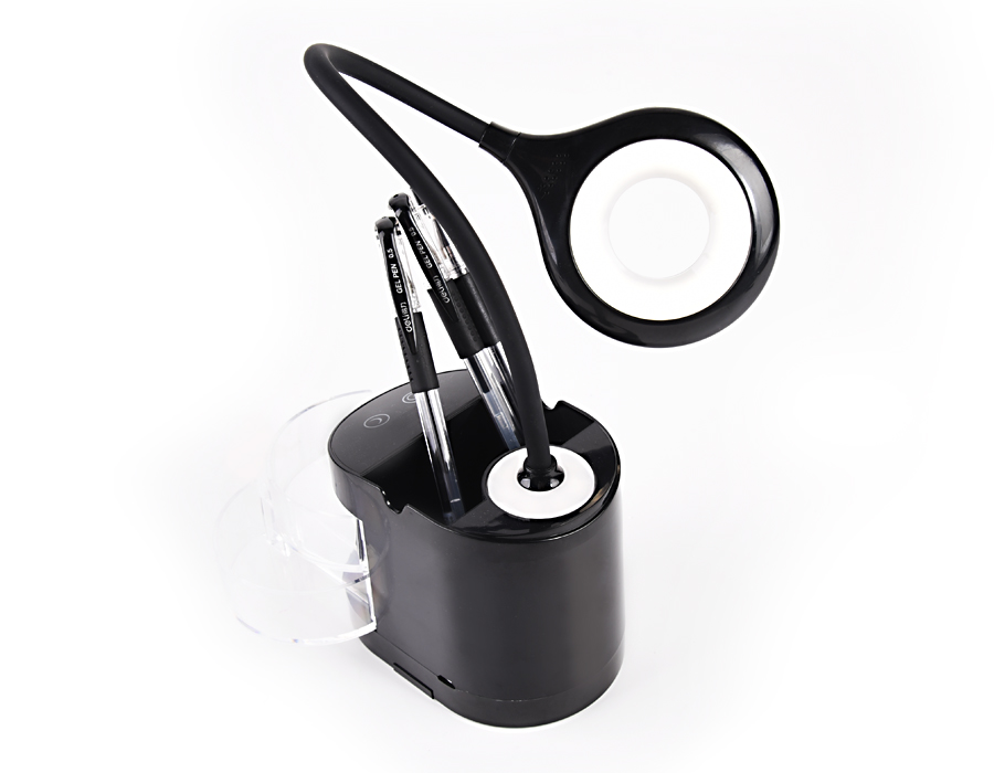Светодиодная настольная лампа DE562 оформлена в современном стиле, черного цвета и выполнена по стандартам современных технологий. Данная модель оснащеня встроенной аккумуляторной батареей, USB портом, а так же органайзером и режимом диммирования, что создаст комфортное освещене для любого потребителя.