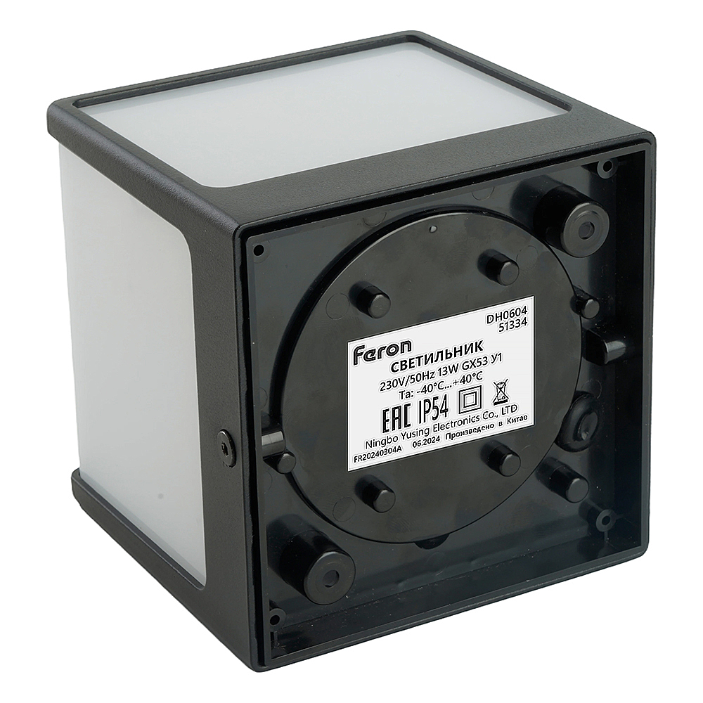 Светильник садово-парковый, серии "Киото", (ЛБУ) FERON DH0604 GX53, 230V, IP54, цвет черный, квадрат, на стену , 110*110*103мм