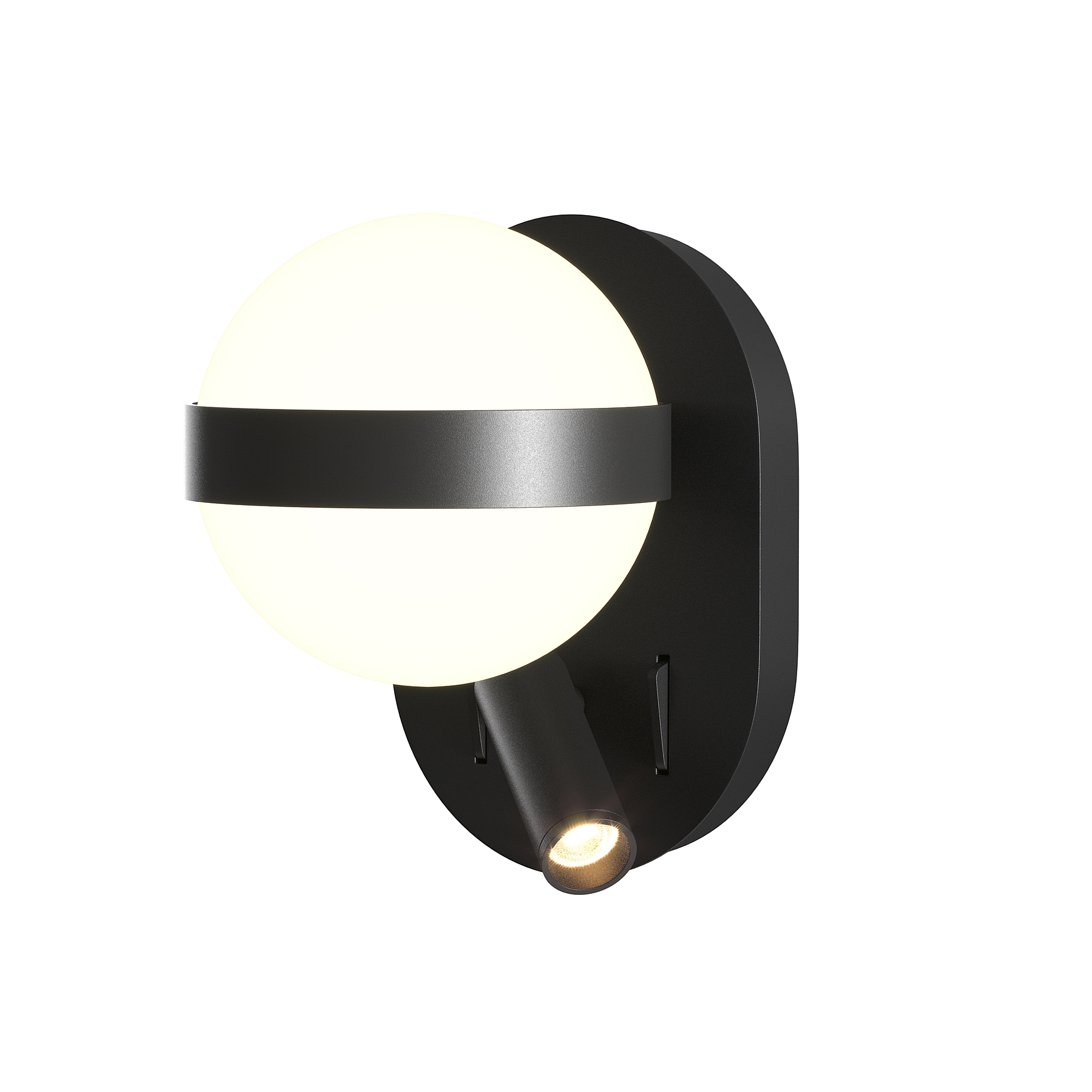 Сочетание декоративной и функциональной подсветки. Металлическая арматура в двух цветах: черный, латунь. Два независимых LED-источника 3000K: матовый акриловый плафон для рассеянного света и поворотный спот для направленного освещения. Раздельное управление кнопками на корпусе. Настенный светильник с системой двойного освещения. Для гостиных, спален, кабинетов и детских комнат. Обеспечивает как общее освещение, так и точечную подсветку для чтения и работы.