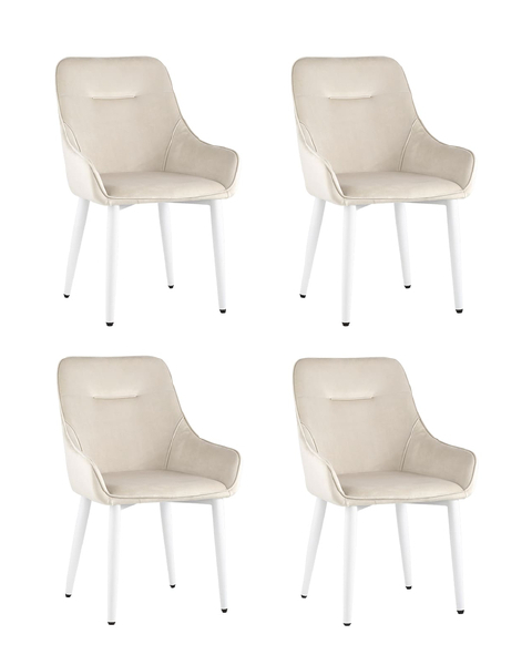 Комплект из четырех стульев Диана велюр цвет кремовый ножки белые из металла