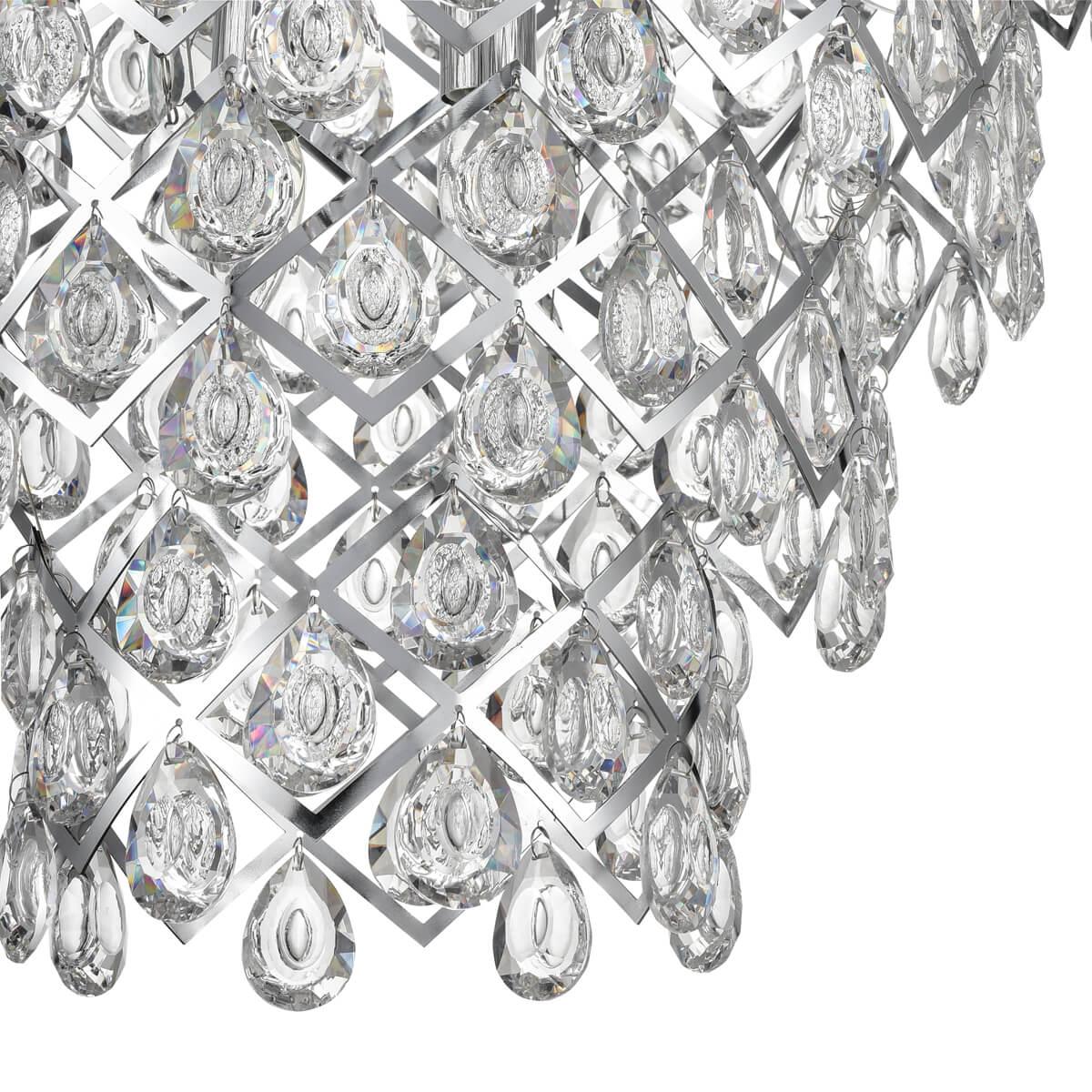 Допускается отличие страны-изготовителя, указанной в характеристиках. Линии производства могут находиться в нескольких государствах. Это не влияет на качество изготовления товара: все заводы данного бренда работают по общим стандартам, а готовые изделия проходят соответствующий контроль.Польша Коллекция Diana ЦветЦвет арматуры Хром Цвет Хром Материал арматуры Металл РазмерыВысота (мм) 1850 Диаметр (мм) 510 Ширина (мм) 510 ЭлектрикаКоличество ламп (шт) 6 Цоколь E14 Тип лампы Накаливания Мощность лампы (Вт) 40 Общая мощность (Вт) 240 Напряжение (В) 220 Площадь освещения 12 Дополнительная информацияСтепень защиты (IP) IP20 Место установки на потолок Вес (Кг) 8,9 Тип подвеса На цепи -