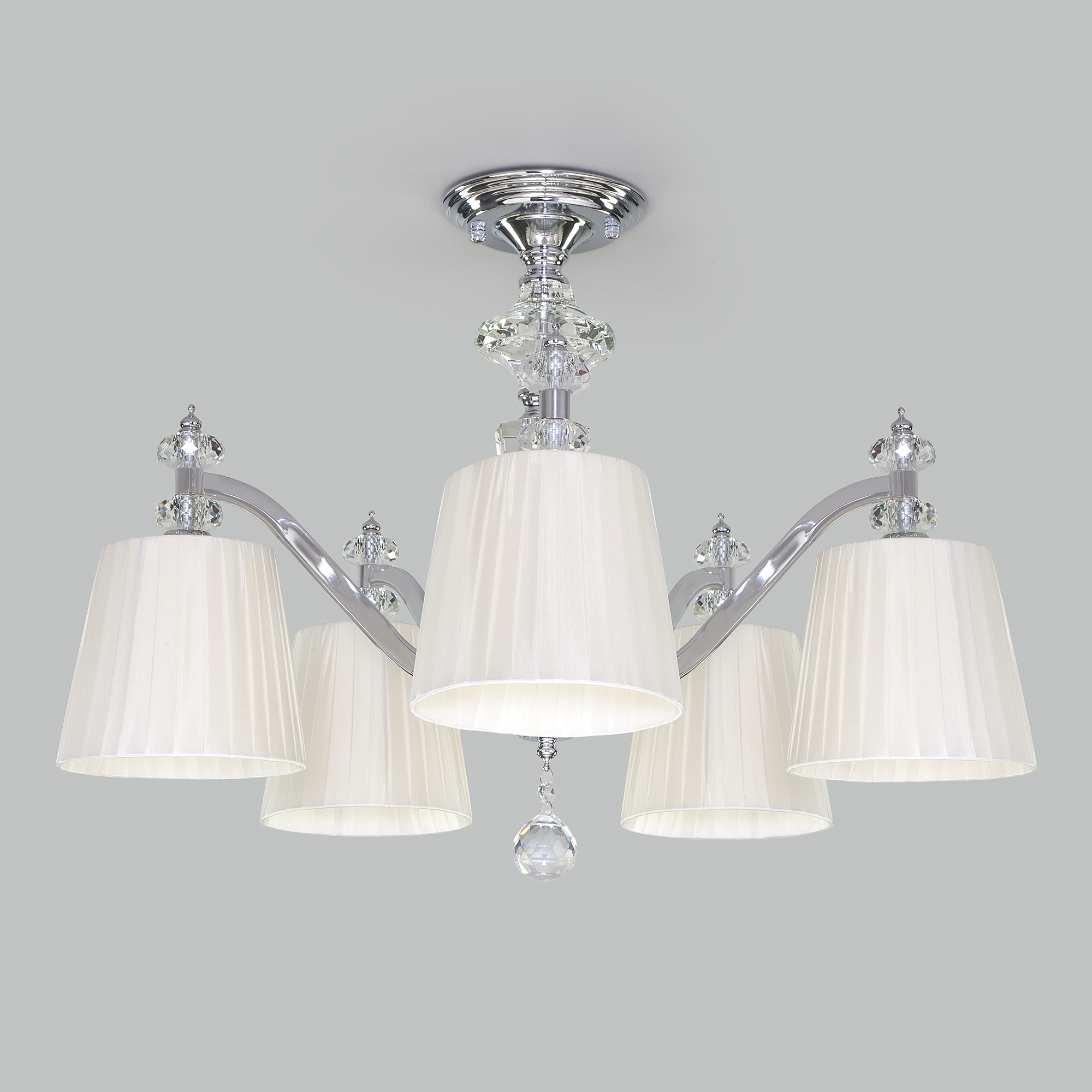 Допускается отличие страны-изготовителя, указанной в характеристиках. Линии производства могут находиться в нескольких государствах. Это не влияет на качество изготовления товара: все заводы данного бренда работают по общим стандартам, а готовые изделия проходят соответствующий контроль.Китай Коллекция Diva ЦветЦвет арматуры Хром Цвет Хром Материал арматуры Металл Цвет декора прозрачный Цвет плафона Белый Материал декора Хрусталь Материал плафона Ткань РазмерыВысота (мм) 440 Длина (мм) 625 Ширина (мм) 625 ЭлектрикаКоличество ламп (шт) 5 Цоколь E14 Мощность лампы (Вт) 40 Напряжение (В) 220 Площадь освещения 10 Дополнительная информацияСтепень защиты (IP) IP20 -