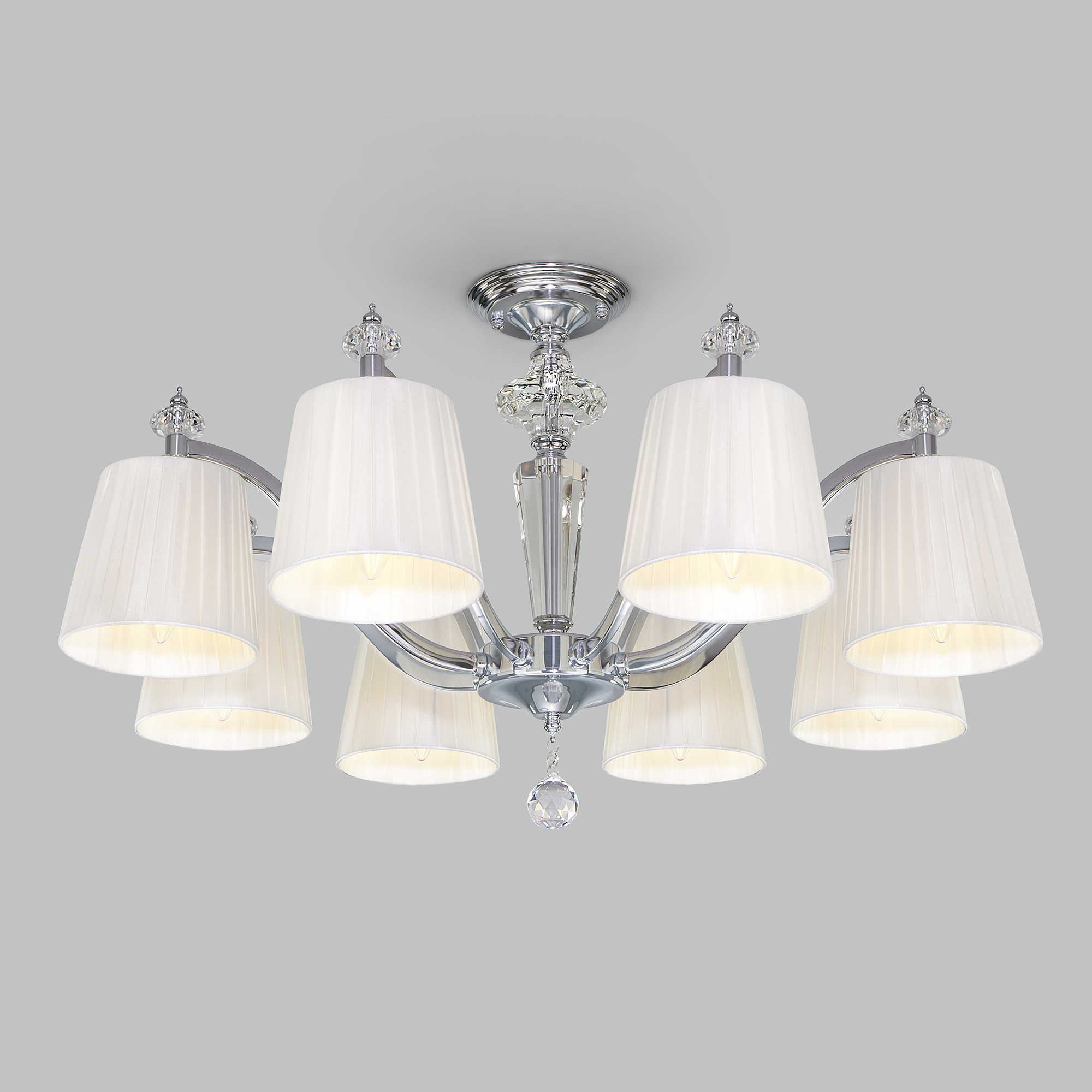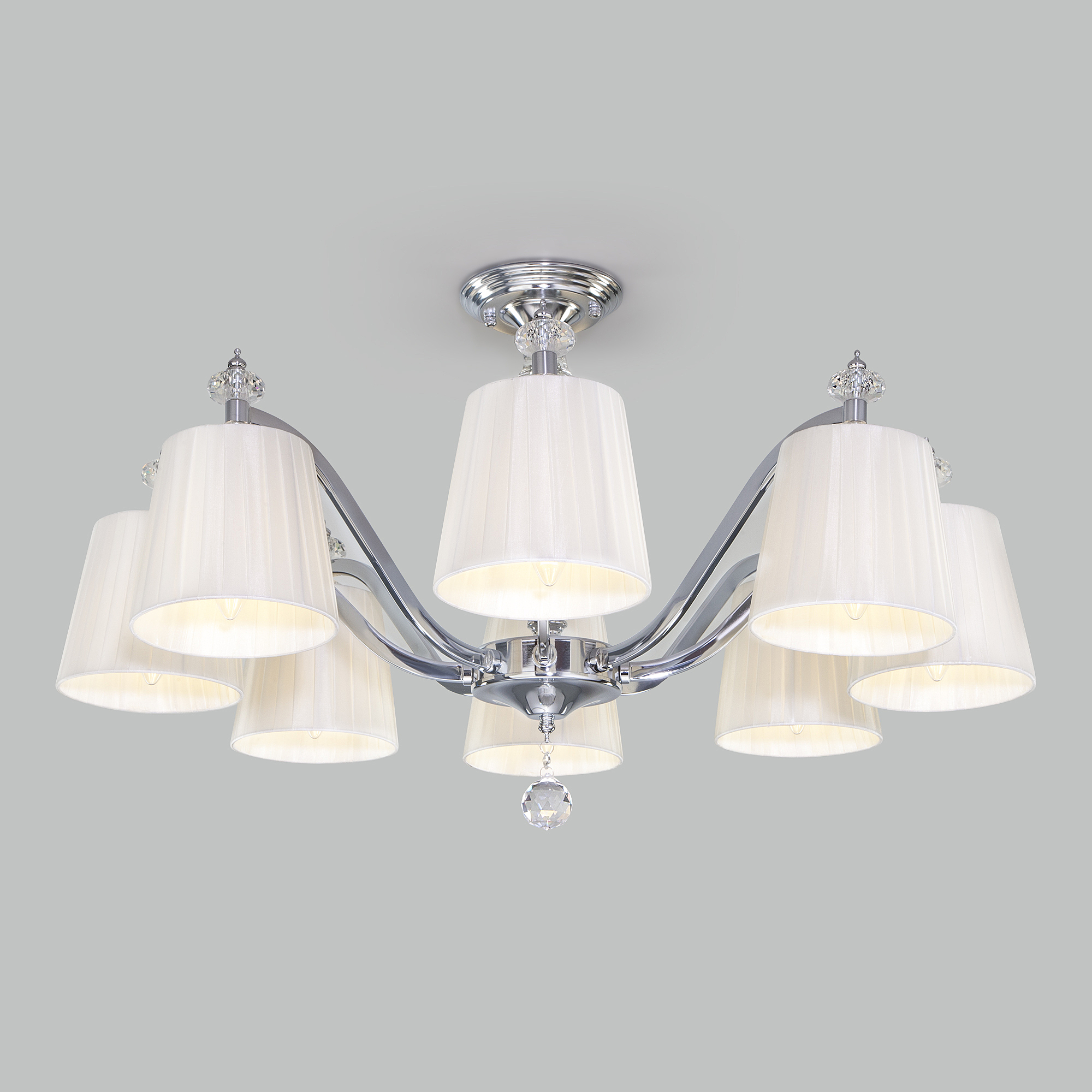 Допускается отличие страны-изготовителя, указанной в характеристиках. Линии производства могут находиться в нескольких государствах. Это не влияет на качество изготовления товара: все заводы данного бренда работают по общим стандартам, а готовые изделия проходят соответствующий контроль.Китай Коллекция Diva ЦветЦвет арматуры Хром Цвет Хром Материал арматуры Металл Цвет декора прозрачный Цвет плафона Белый Материал декора Хрусталь Материал плафона Ткань РазмерыВысота (мм) 470 Длина (мм) 780 Ширина (мм) 780 ЭлектрикаКоличество ламп (шт) 8 Цоколь E14 Мощность лампы (Вт) 40 Напряжение (В) 220 Площадь освещения 16 Дополнительная информацияСтепень защиты (IP) IP20 -