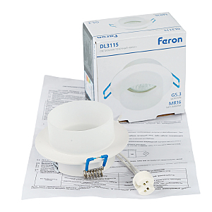 Светильник потолочный встраиваемый (ИВО) FERON DL3115, под лампу MR16 G5.3, белый, круг, 80*80*45 мм, монтажный диаметр 60мм, корпус металл+акрил, неповоротный