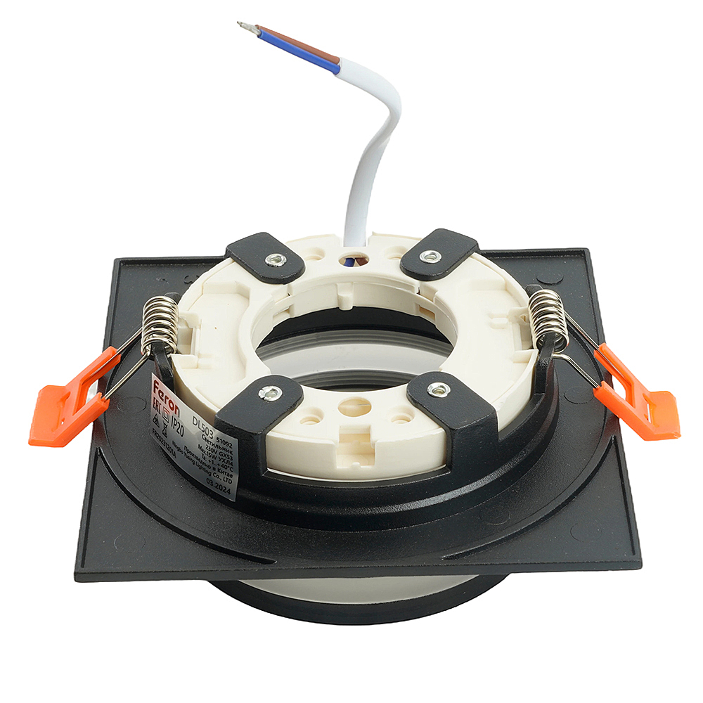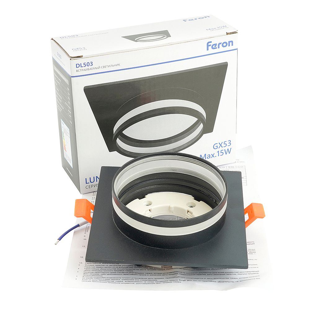 Светильник потолочный встраиваемый (ФВО) FERON DL503, под лампу GX53 GX53, черный, квадрат, 110*110*48 мм, монтажный диаметр 90мм, корпус металл+акрил, неповоротный