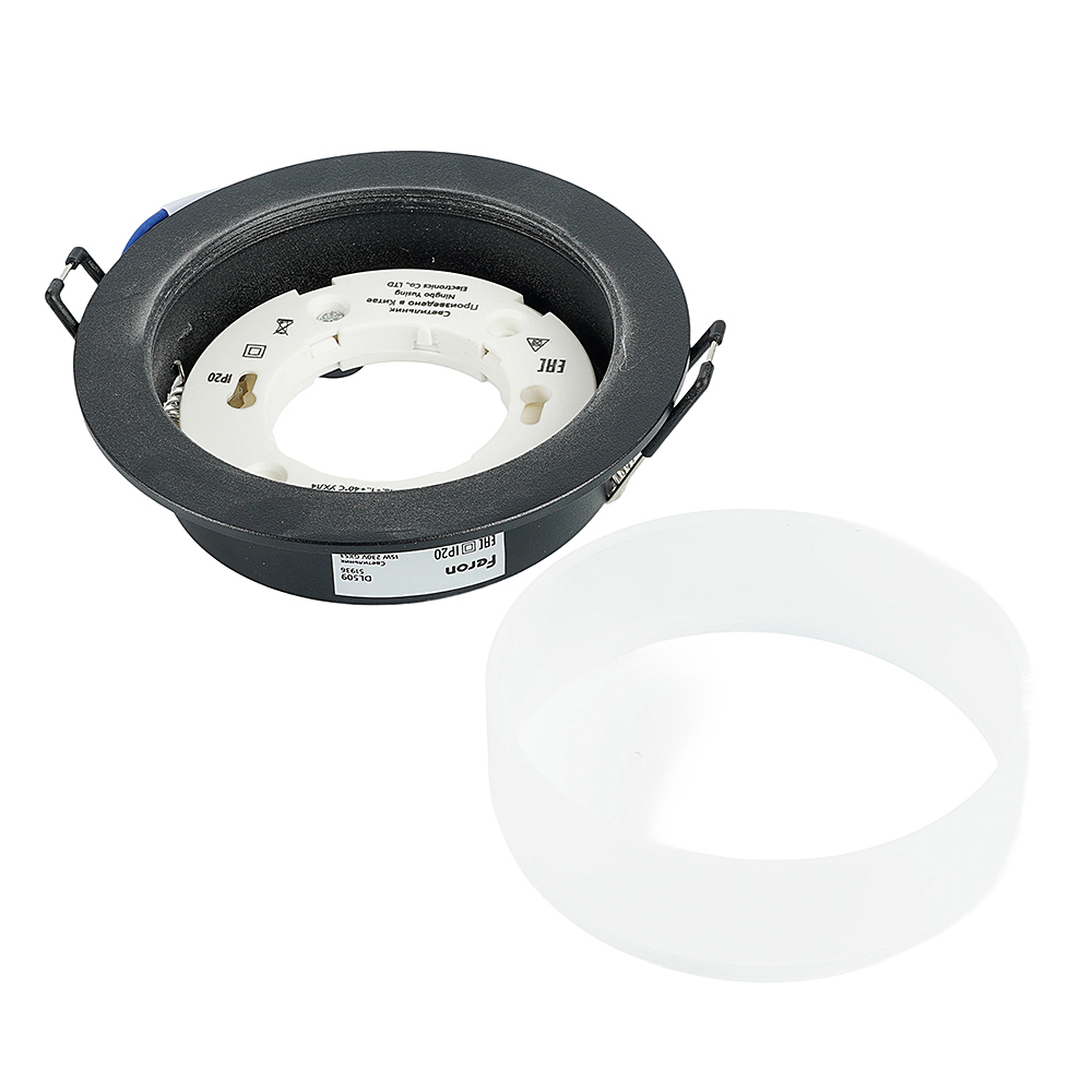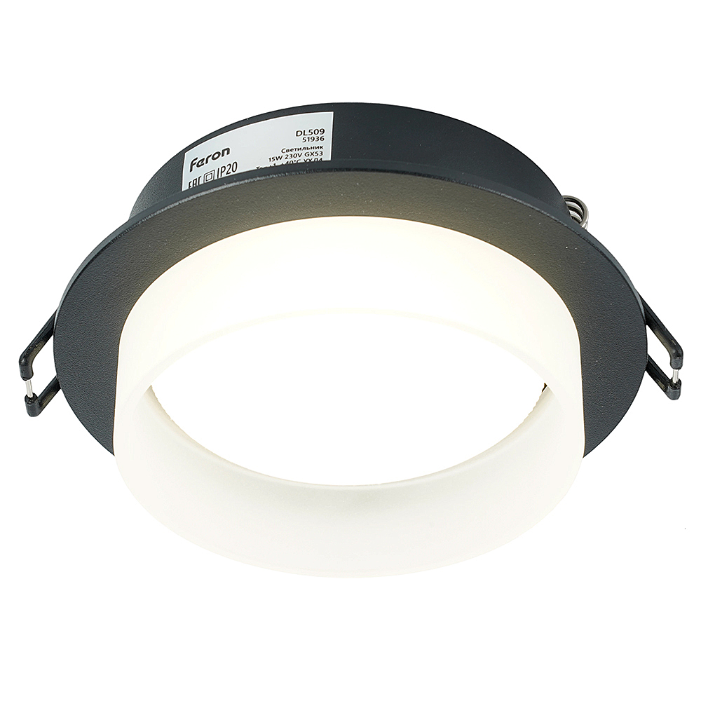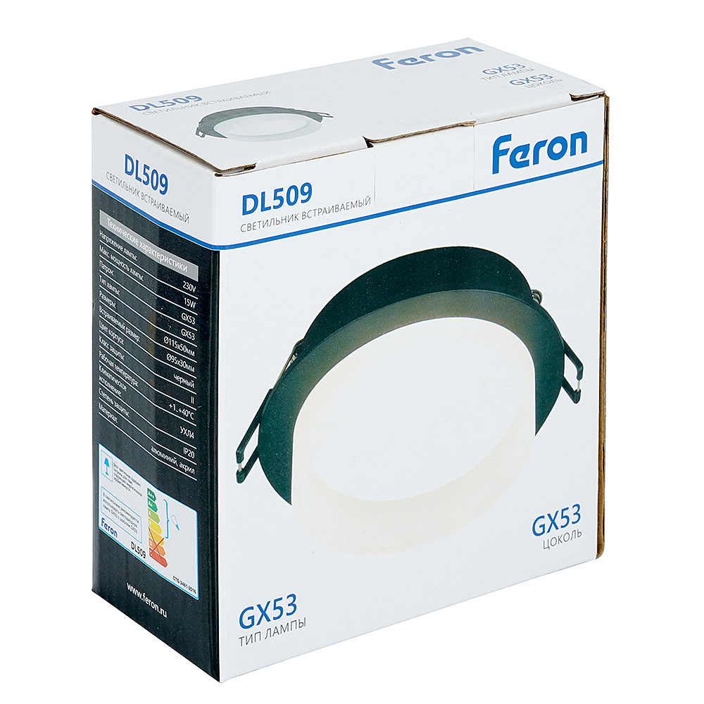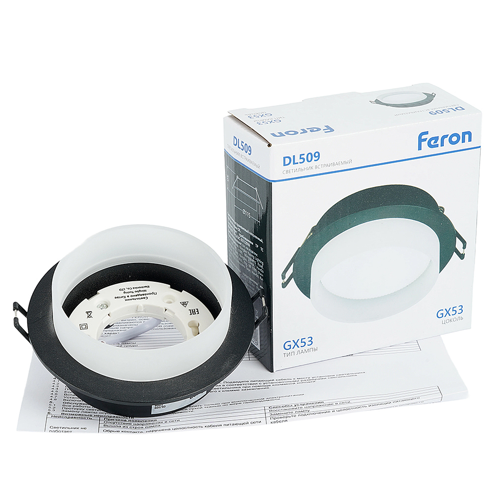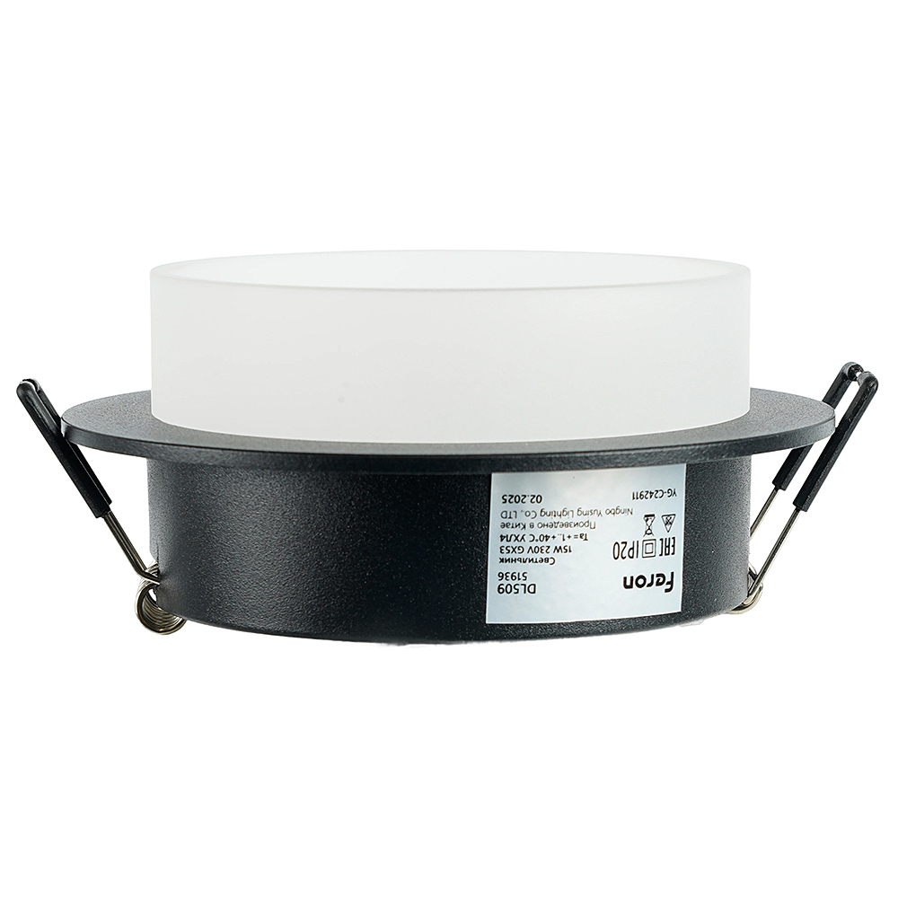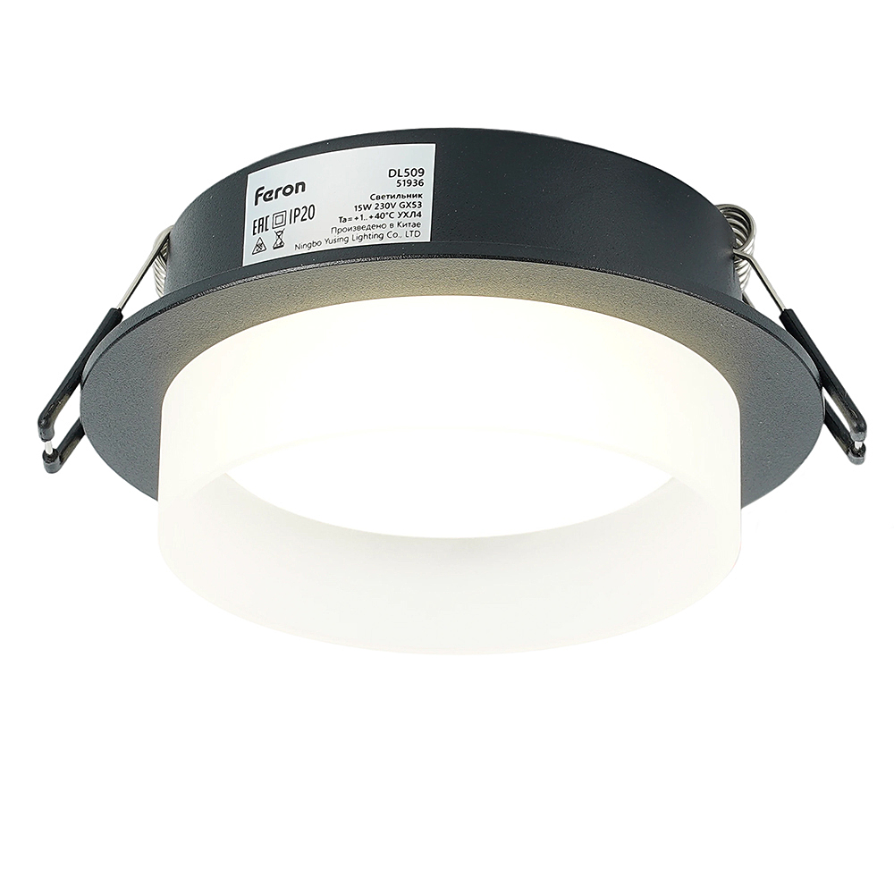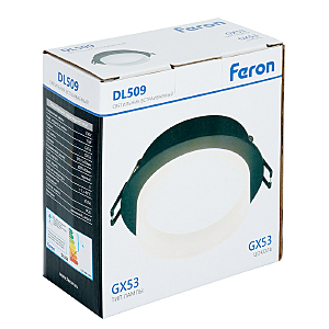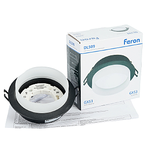 Светильник потолочный встраиваемый (-) FERON DL509, под лампу GX53 GX53, черный, круг, 108*108*46 мм, монтажн.отв. 0*--мм, монтажный диаметр 90мм, корпус алюминий, акрил, неповоротный