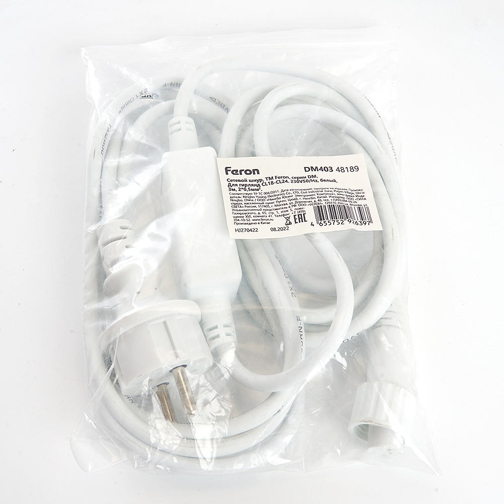 Сетевой Шнур Для Гирлянд 3М, 2*0,5Мм2, Ip44, Белый, Dm403
