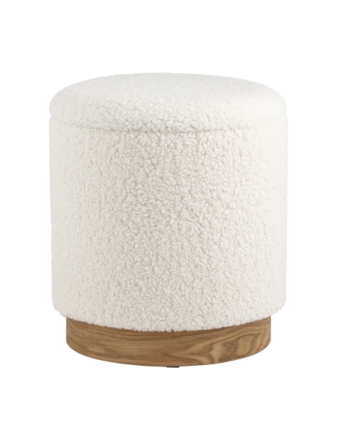 <p>Лаконичный пуф в скандинавском стиле. Обивка выполнена из искусственного меха тедди - очень мягкий и приятный на ощупь материал. Прочный каркас из фанеры выдерживает на грузку до 150 кг. Основание из светлого массива дерева гармонично сочетается с белой обивкой. Пуф оснащен вместительным ящиком для хранения различный мелочей. Отличное функциональное дополнение для детской или спальни.</p><p>Высота пуфа: 42 см. Диаметр: 37 см.</p>