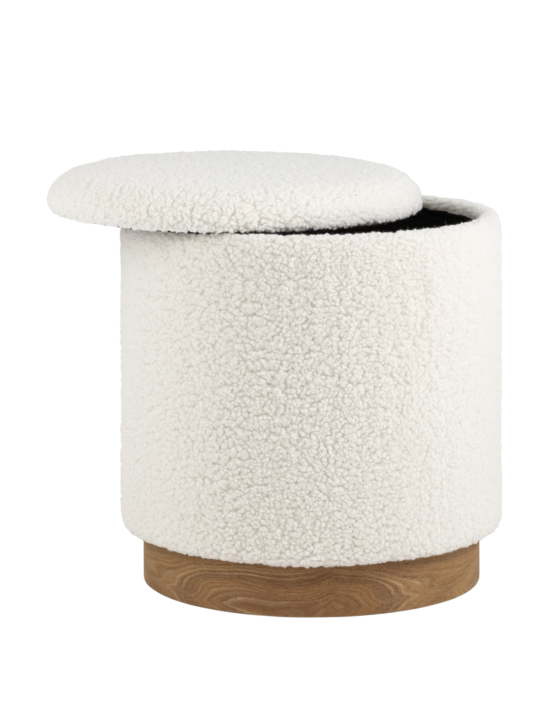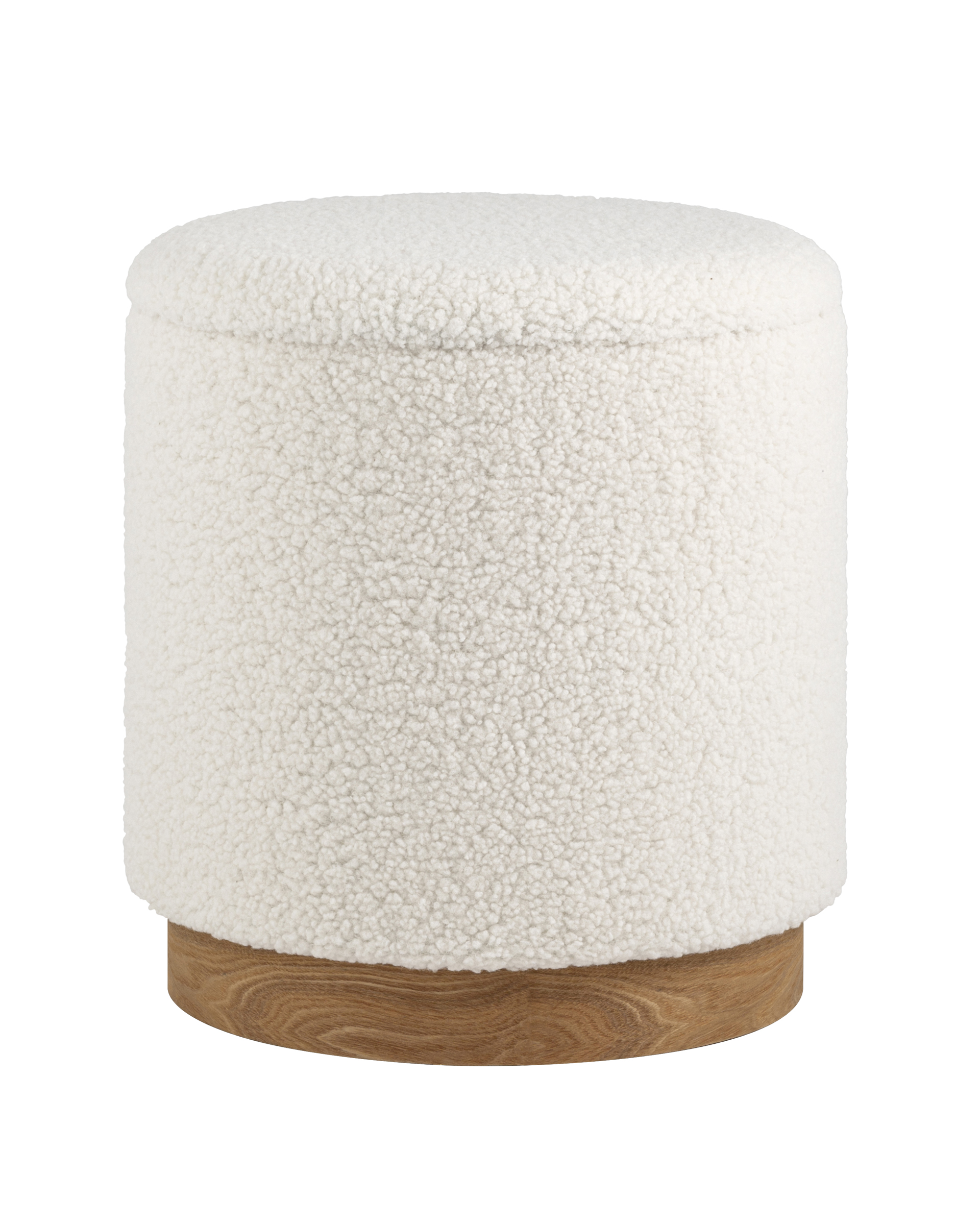 <p>Лаконичный пуф в скандинавском стиле. Обивка выполнена из искусственного меха тедди - очень мягкий и приятный на ощупь материал. Прочный каркас из фанеры выдерживает на грузку до 150 кг. Основание из светлого массива дерева гармонично сочетается с белой обивкой. Пуф оснащен вместительным ящиком для хранения различный мелочей. Отличное функциональное дополнение для детской или спальни.</p><p>Высота пуфа: 46 см. Диаметр: 41 см.</p>