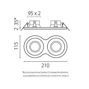 Допускается отличие страны-изготовителя, указанной в характеристиках. Линии производства могут находиться в нескольких государствах. Это не влияет на качество изготовления товара: все заводы данного бренда работают по общим стандартам, а готовые изделия проходят соответствующий контроль.Италия Коллекция Domino ЦветЦвет арматуры Черный Цвет Черный Материал арматуры Металл, Пластик РазмерыВысота (мм) 2 Длина (мм) 210 Ширина (мм) 115 Диаметр врезного отверстия (мм) 90-95x2 Диаметр основания 90 ЭлектрикаКоличество ламп (шт) 2 Цоколь GU5.3 Тип лампы Светодиодная, Галогеновая Мощность лампы (Вт) 50 Напряжение (В) 220 Дополнительная информацияСпособ крепления Пружина Степень защиты (IP) IP20 Вес (Кг) 0,393 -