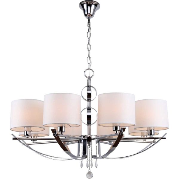 Допускается отличие страны-изготовителя, указанной в характеристиках. Линии производства могут находиться в нескольких государствах. Это не влияет на качество изготовления товара: все заводы данного бренда работают по общим стандартам, а готовые изделия проходят соответствующий контроль.Германия Коллекция Dora ЦветЦвет арматуры Хром Цвет Хром Материал арматуры Металл Цвет плафона Белый Материал плафона Ткань, ПВХ РазмерыВысота (мм) 730-1020 Диаметр (мм) 750 Высота минимальная (мм) 730 Ширина (мм) 750 ЭлектрикаКоличество ламп (шт) 8 Цоколь E14 Лампочки в комплекте нет Мощность лампы (Вт) 40 Напряжение (В) 220 Площадь освещения 21 Дополнительная информацияСпособ крепления Планка Степень защиты (IP) IP20 Вес (Кг) 4,734 Диммирование Нет Тип подвеса На цепи -