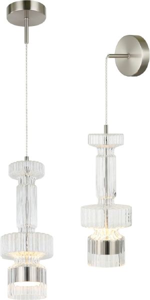 Светильник подвесной настенный премиум-класса коллекции Down Up выполнен из металла, гальванизированного в цвет никеля, с прозрачным стеклом линейной формы и двумя светодиодными лампами: направленная вверх подсвечивает всю архитектуру светильника, направленная вниз создаёт акцентное освещение. Преимуществом данного светильника является его возможность установки как на потолок, так и на стену. Современная форма светильника из стекла разных диаметров на разных уровнях идеально впишется в современные и дизайнерские интерьеры. Из данной коллекции светильников можно сделать индивидуальный заказ любого цвета и размера.