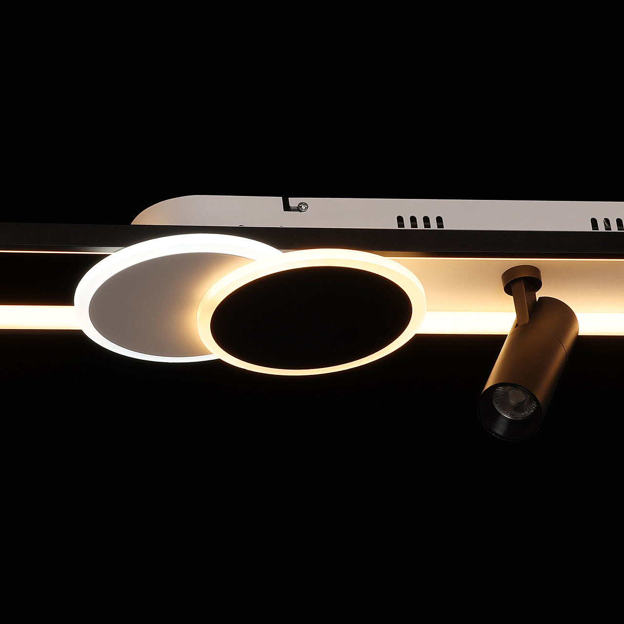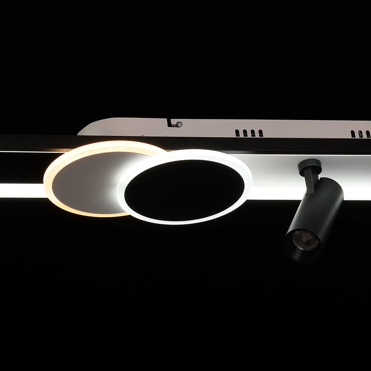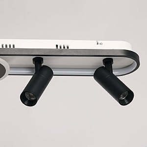 Контрастный черный цвет основания и плафонов в сочетании с белым цветом обеспечивает актуальный дизайна и добавляет концептуальности. Матовый акрил мягко рассеивает свет, создавая комфортное освещение. Многорежимность освещения от 3000К до 6500К позволяет подобрать комфортную температуру света. Качественные светодиоды экономичны и безопасны. Поворотные споты позволяют направлять световой поток в нужную сторону, что создает комфортное освещение. Компактный размер потолочной люстры подойдет к интерьерам со стандартным потолком. Наличие ПДУ удобно в эксплуатации.