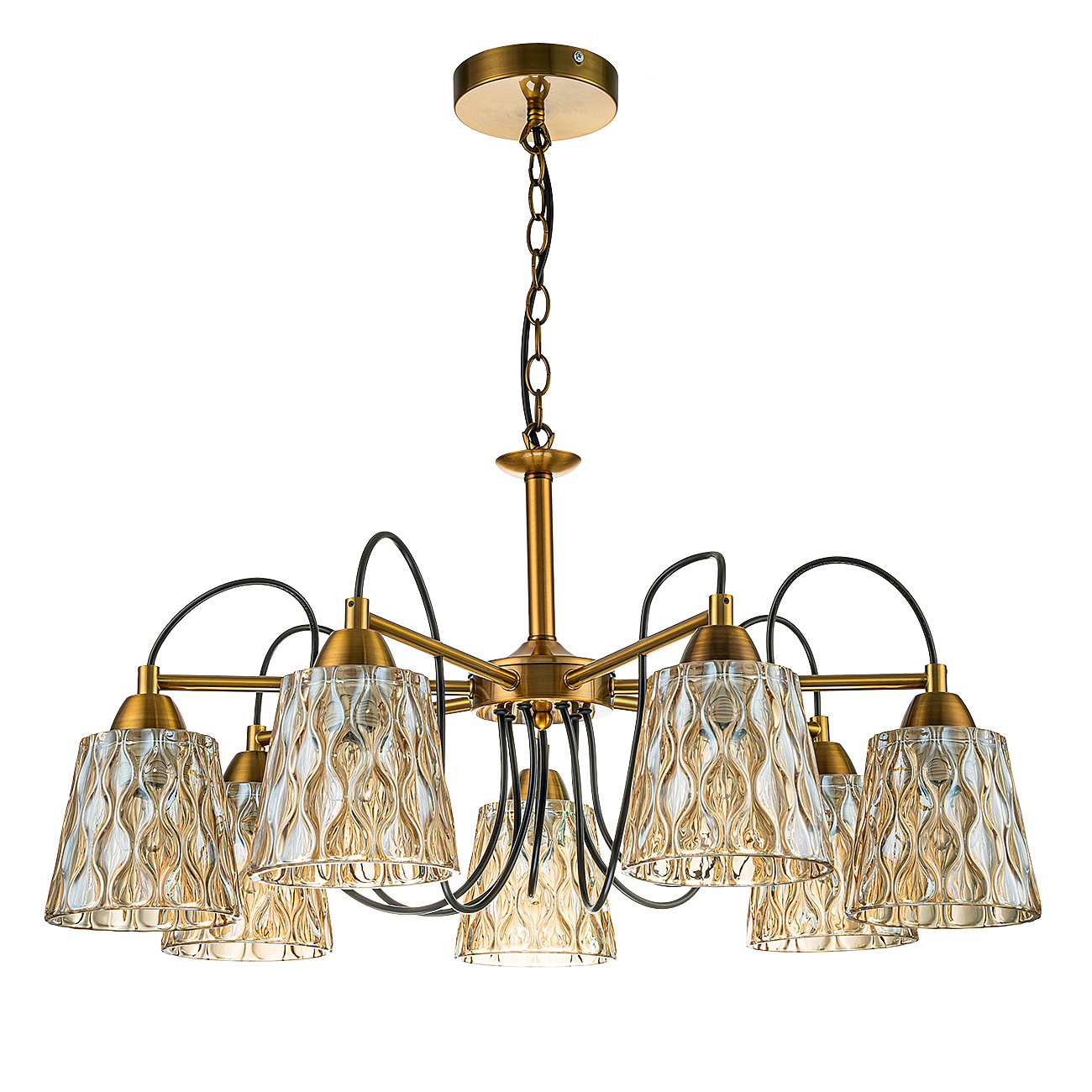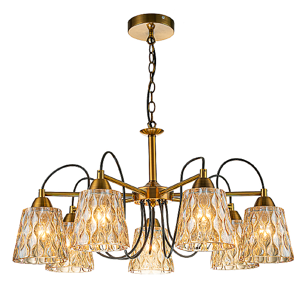 Подвесной светильник 7x40Вт E27, металл/стекло, бронза/янтарный