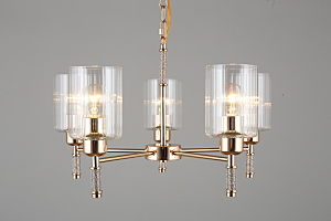 Допускается отличие страны-изготовителя, указанной в характеристиках. Линии производства могут находиться в нескольких государствах. Это не влияет на качество изготовления товара: все заводы данного бренда работают по общим стандартам, а готовые изделия проходят соответствующий контроль.Китай Коллекция Dronero ЦветЦвет арматуры Золото Цвет Золото Материал арматуры Металл Цвет плафона прозрачный Материал плафона Стекло РазмерыВысота (мм) 650 Диаметр (мм) 520 Высота минимальная (мм) 350 Ширина (мм) 520 ЭлектрикаКоличество ламп (шт) 5 Цоколь E27 Лампочки в комплекте Нет в комплекте Мощность лампы (Вт) 60 Общая мощность (Вт) 300 Напряжение (В) 220 Световой поток 3150 Дополнительная информацияСпособ крепления Планка Вес (Кг) 2.1 Тип подвеса На цепи -