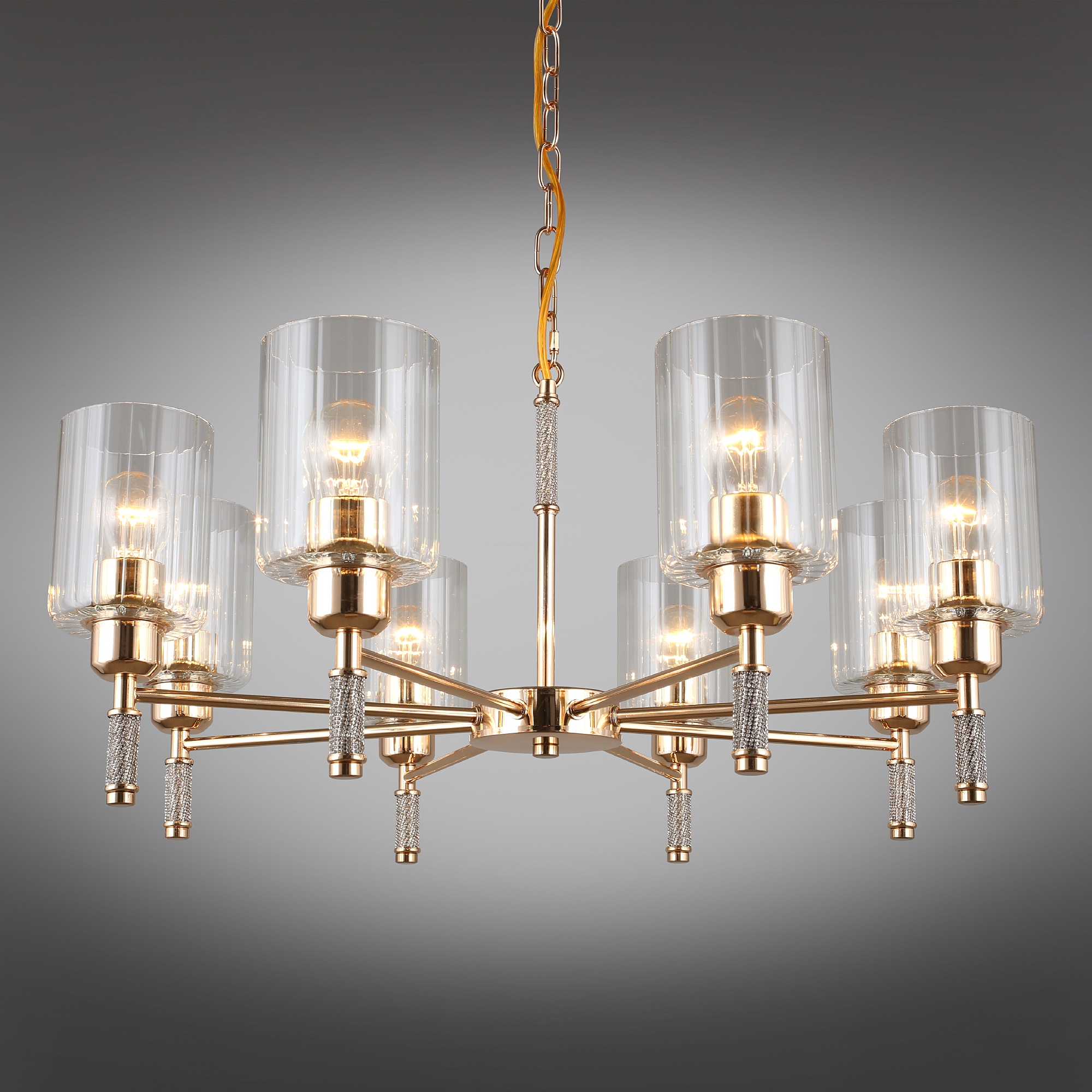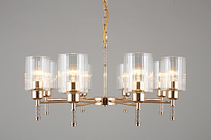 Допускается отличие страны-изготовителя, указанной в характеристиках. Линии производства могут находиться в нескольких государствах. Это не влияет на качество изготовления товара: все заводы данного бренда работают по общим стандартам, а готовые изделия проходят соответствующий контроль.Китай Коллекция Dronero ЦветЦвет арматуры Золото Цвет Золото Материал арматуры Металл Цвет плафона прозрачный Материал плафона Стекло РазмерыВысота (мм) 650 Диаметр (мм) 520 Высота минимальная (мм) 350 Ширина (мм) 520 ЭлектрикаКоличество ламп (шт) 8 Цоколь E27 Лампочки в комплекте Нет в комплекте Мощность лампы (Вт) 60 Общая мощность (Вт) 480 Напряжение (В) 220 Световой поток 5040 Дополнительная информацияСпособ крепления Планка Вес (Кг) 3.3 Тип подвеса На цепи -