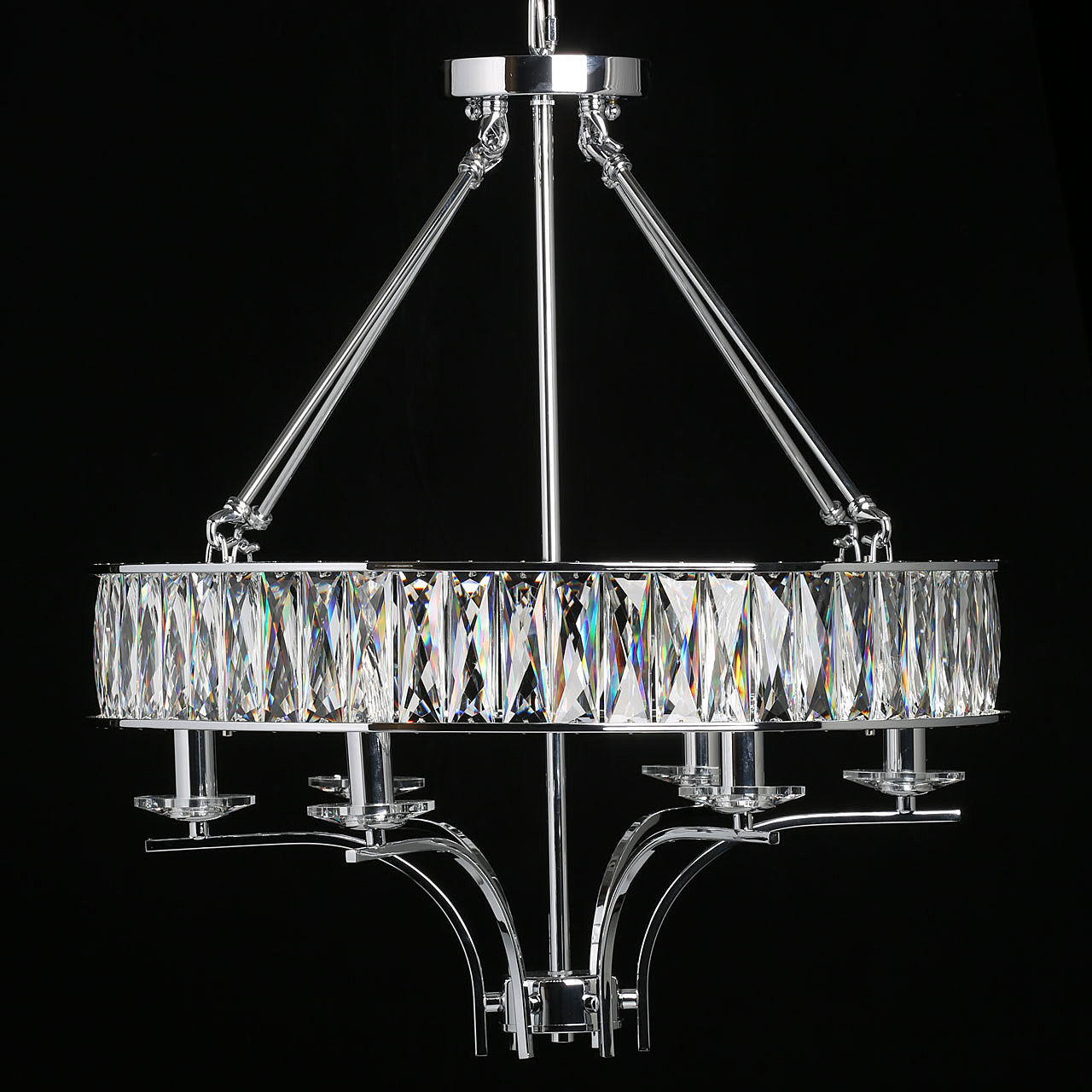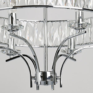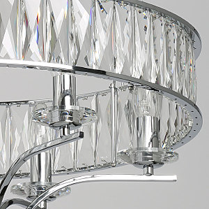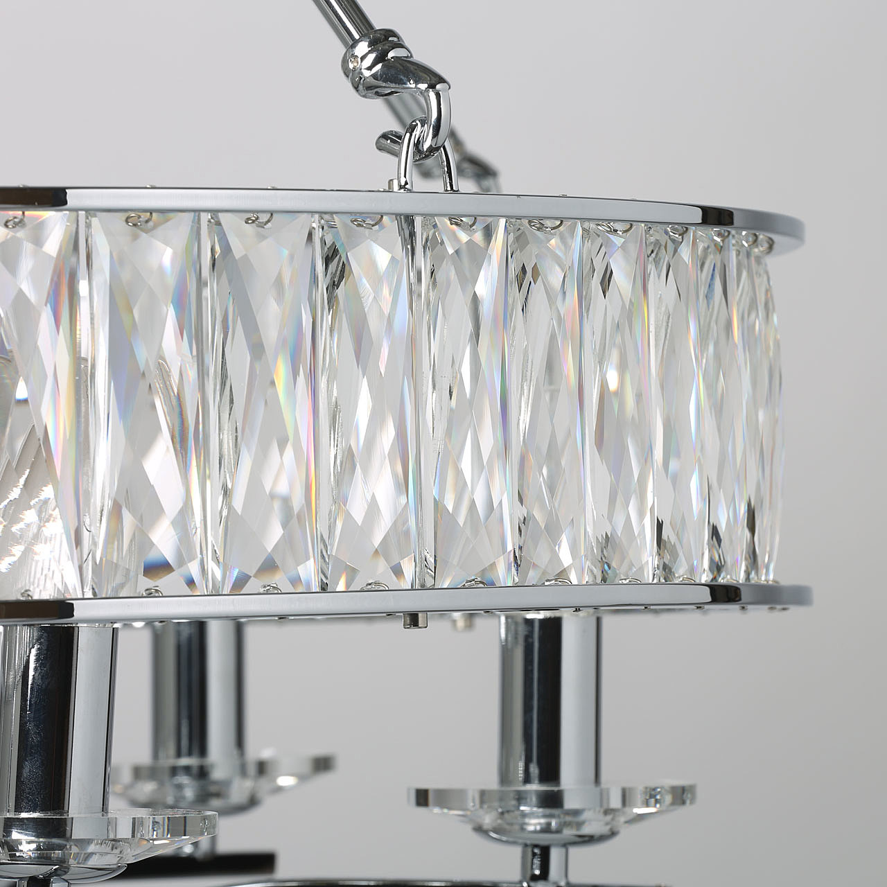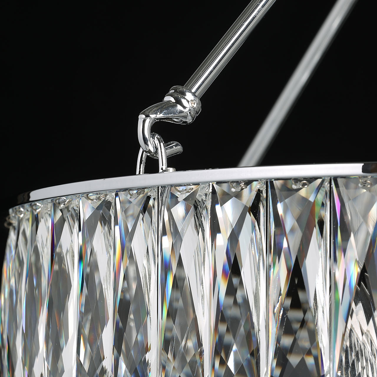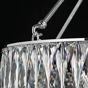Трендовое сочетание хрусталя и цвета хрома смотрится актуально и современно.Хрустальный декор придает подвесной люстре роскоши.Хрусталь высокого качества создает красивую игру света.Оригинальная форма люстры привлекает внимание.Открытые лампочки создают хорошее освещение всего пространства комнаты. Возможность регулировать комфортную высоту.Заменяемые источники света удобны в эксплуатации.