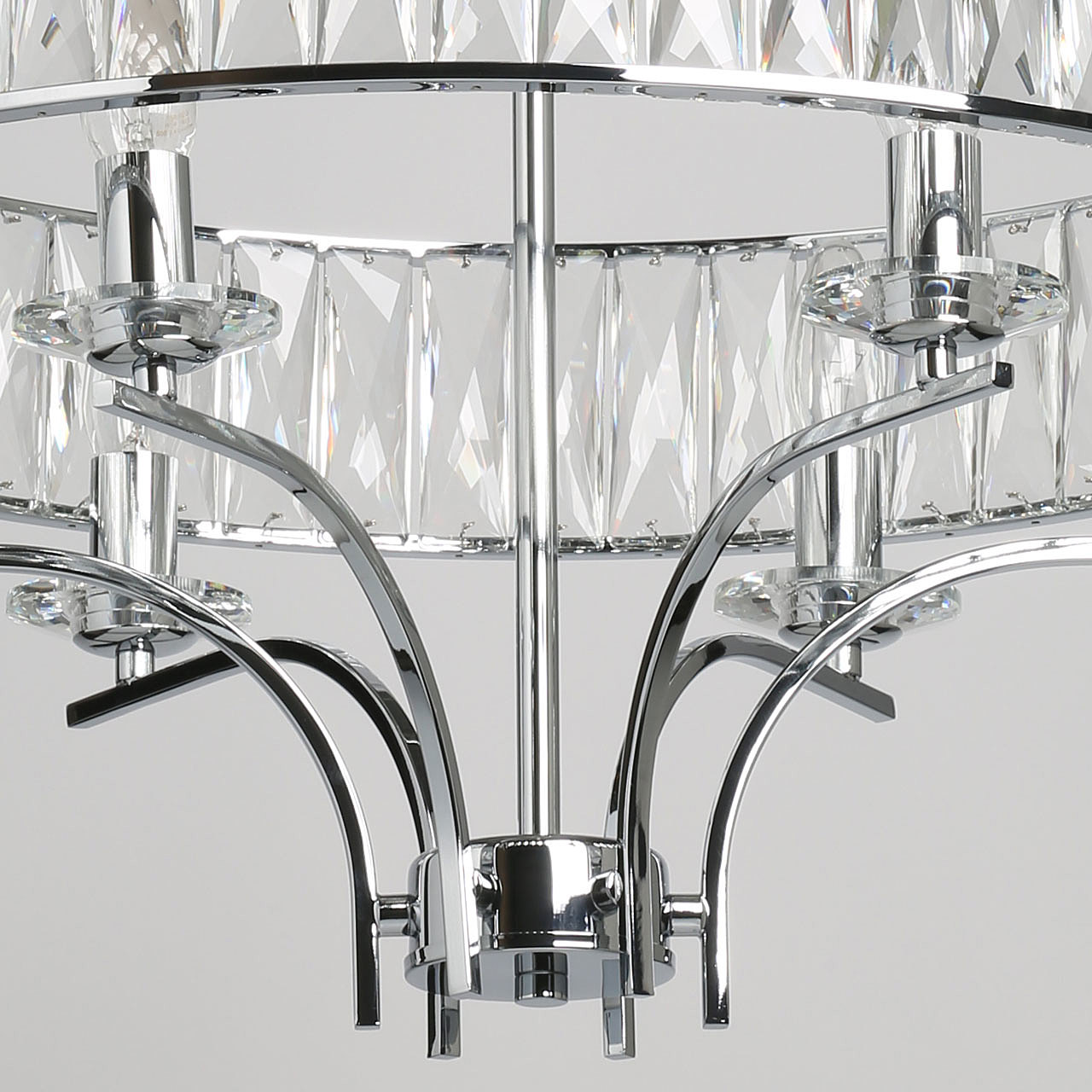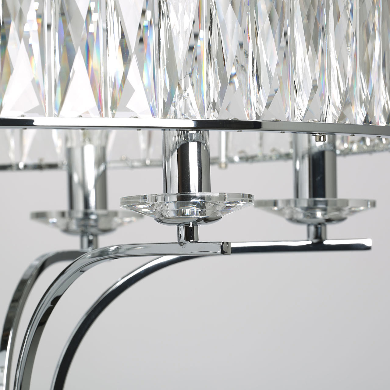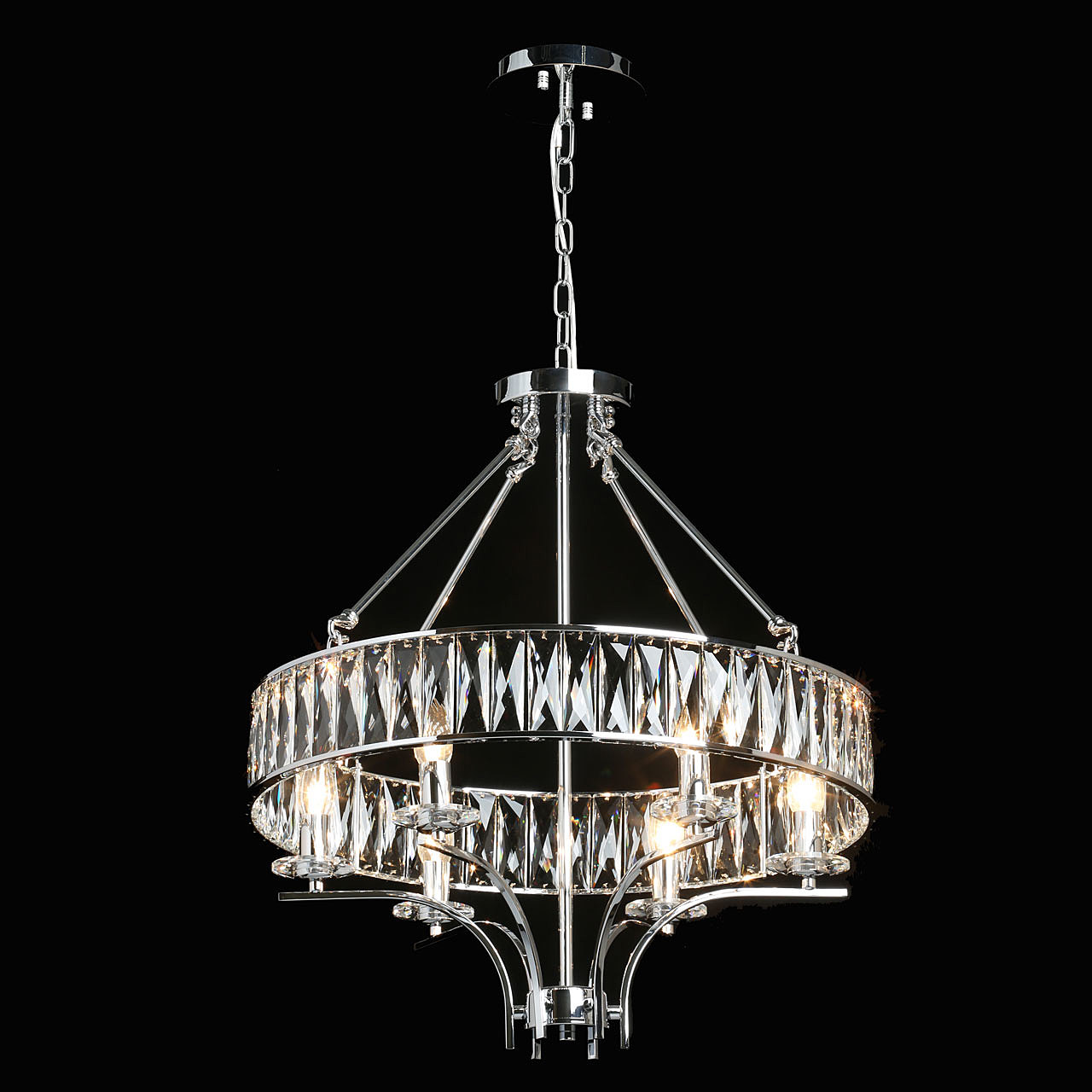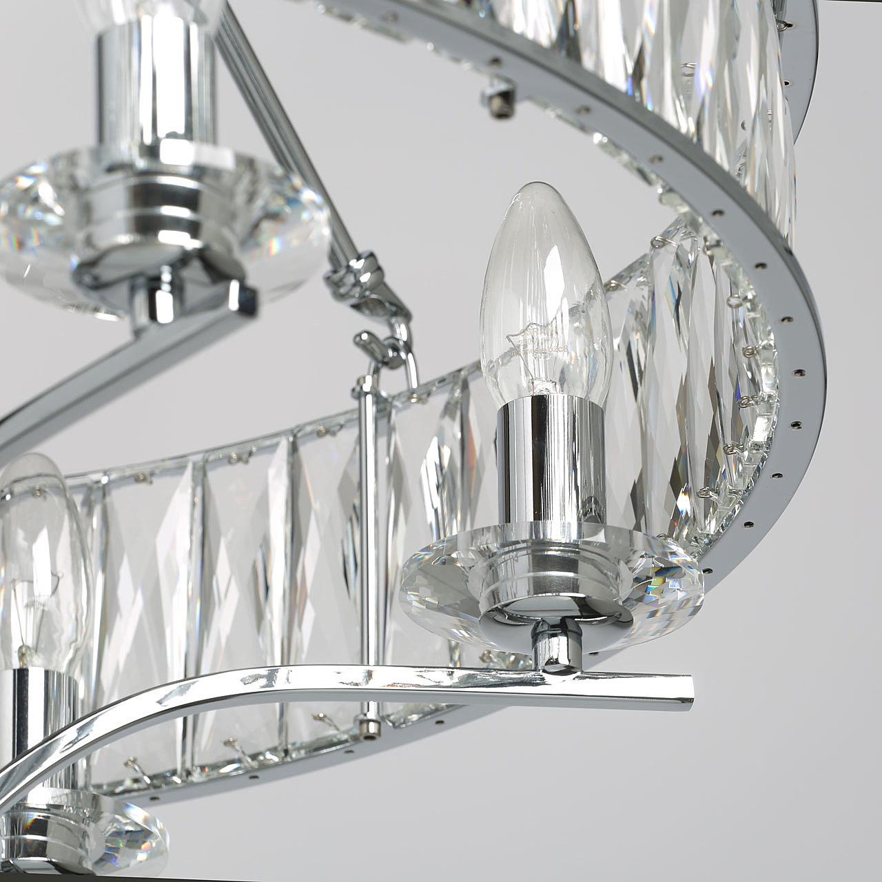 Трендовое сочетание хрусталя и цвета хрома смотрится актуально и современно.Хрустальный декор придает подвесной люстре роскоши.Хрусталь высокого качества создает красивую игру света.Оригинальная форма люстры привлекает внимание.Открытые лампочки создают хорошее освещение всего пространства комнаты. Возможность регулировать комфортную высоту.Заменяемые источники света удобны в эксплуатации.