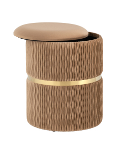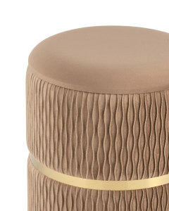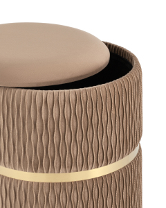 Пуф Джесси с ящиком велюр бежевый с декоративным золотым ободком