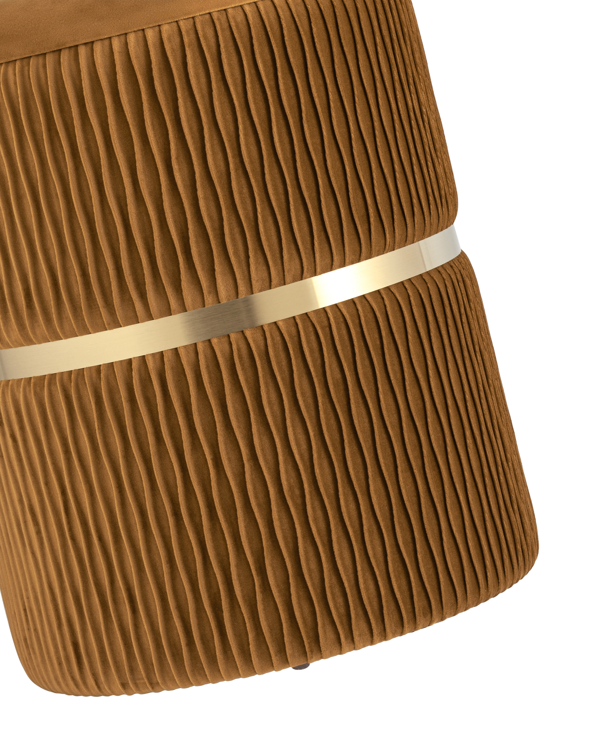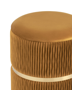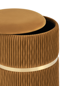 Пуф Джесси с ящиком велюр горчичный с декоративным золотым ободком
