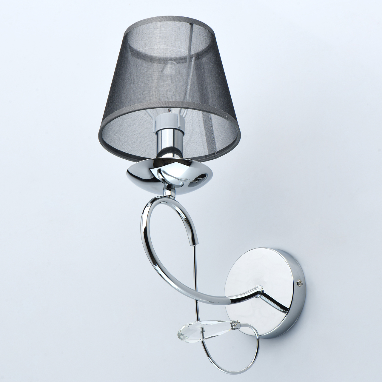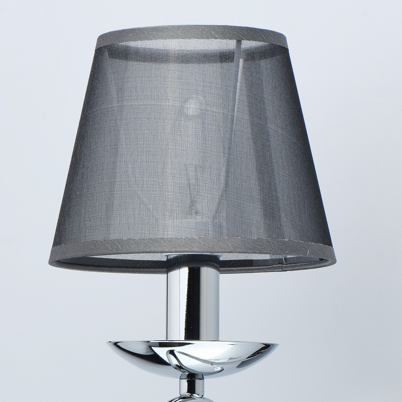 Абажур из тонкого текстиля дымчатого цвета создает комфортное освещение. Хрустальные элементы придают изящества модели.Полная семья из бра и люстр на 5 и 8 ламп.