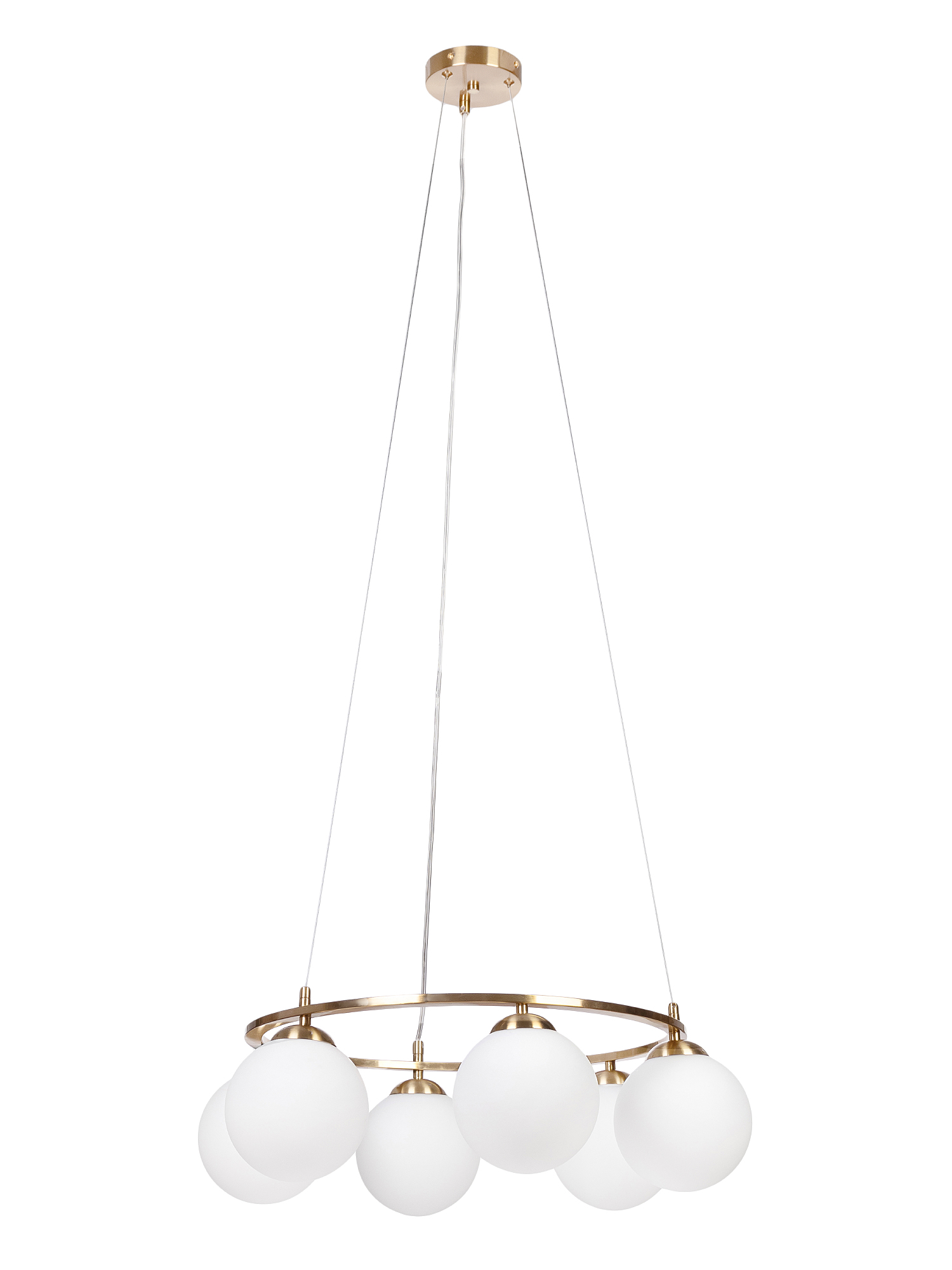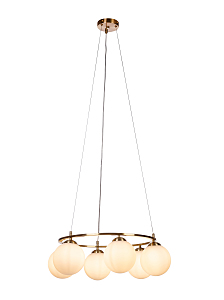 Допускается отличие страны-изготовителя, указанной в характеристиках. Линии производства могут находиться в нескольких государствах. Это не влияет на качество изготовления товара: все заводы данного бренда работают по общим стандартам, а готовые изделия проходят соответствующий контроль.Россия Коллекция Edith ЦветЦвет арматуры Латунь Цвет Латунь Материал арматуры Металл Цвет плафона Белый Материал плафона Стекло РазмерыВысота (мм) 1200 Длина (мм) 620 Диаметр (мм) 620 Высота минимальная (мм) 190 Ширина (мм) 620 ЭлектрикаКоличество ламп (шт) 6 Цоколь E27 Лампочки в комплекте Нет в комплекте Мощность лампы (Вт) 40 Общая мощность (Вт) 240 Напряжение (В) 220 Площадь освещения 18 Дополнительная информацияСтепень защиты (IP) IP20 Вес (Кг) 3 Диммирование Нет Тип подвеса На тросах -