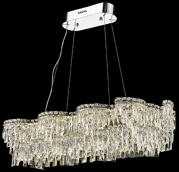 Допускается отличие страны-изготовителя, указанной в характеристиках. Линии производства могут находиться в нескольких государствах. Это не влияет на качество изготовления товара: все заводы данного бренда работают по общим стандартам, а готовые изделия проходят соответствующий контроль.Италия Коллекция Editta ЦветЦвет арматуры Хром Цвет Хром Материал арматуры Металл Цвет плафона прозрачный Материал плафона Хрусталь РазмерыВысота (мм) 770 Длина (мм) 1000 Высота минимальная (мм) 210 Ширина (мм) 380 ЭлектрикаКоличество ламп (шт) 1 Цоколь LED Лампочки в комплекте Лампы в комплекте Мощность лампы (Вт) 99 Общая мощность (Вт) 99 Напряжение (В) 220 Цветовая температура 3000 Площадь освещения 35 Дополнительная информацияСпособ крепления Планка Степень защиты (IP) IP20 Тип подвеса На тросах -