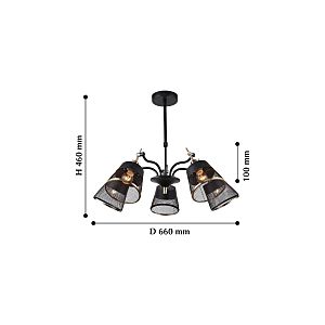 Допускается отличие страны-изготовителя, указанной в характеристиках. Линии производства могут находиться в нескольких государствах. Это не влияет на качество изготовления товара: все заводы данного бренда работают по общим стандартам, а готовые изделия проходят соответствующий контроль.Германия Коллекция Eget ЦветЦвет арматуры Черный Цвет Черный Материал арматуры Металл Цвет плафона Черный Материал плафона Металл РазмерыВысота (мм) 460 Диаметр (мм) 660 Высота минимальная (мм) 340 Ширина (мм) 660 ЭлектрикаКоличество ламп (шт) 5 Цоколь E14 Мощность лампы (Вт) 40 Напряжение (В) 220 Дополнительная информацияСпособ крепления Планка Вес (Кг) 1,8 Техническая оссобеность Телескопическая/Регулируемая по высоте -